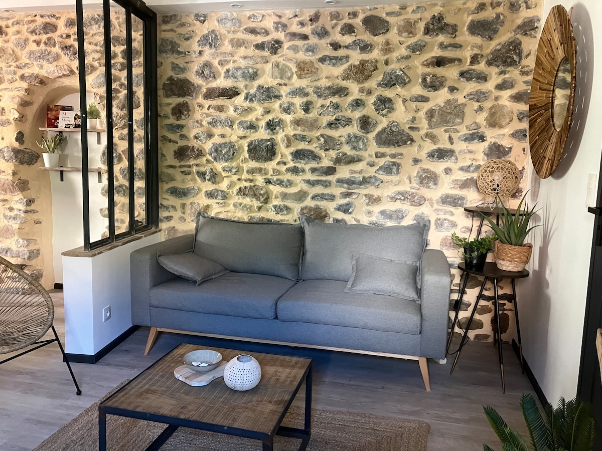 Alojamiento con aire acondicionado atípico e independiente de 60 m2, totalmente renovado, en un antiguo molino de agua, a orillas del río. Cocina equipada, cama queen size + sofá cama, terraza soleada, decoración cuidada, ... encontrará todo lo que necesita durante su estancia. A 3 minutos del lago de Salagou y a 40 minutos de Montpellier, podrá admirar, desde su terraza, unas vistas impresionantes de los acantilados rojos de Salagou y disfrutar de la tranquilidad del interior.