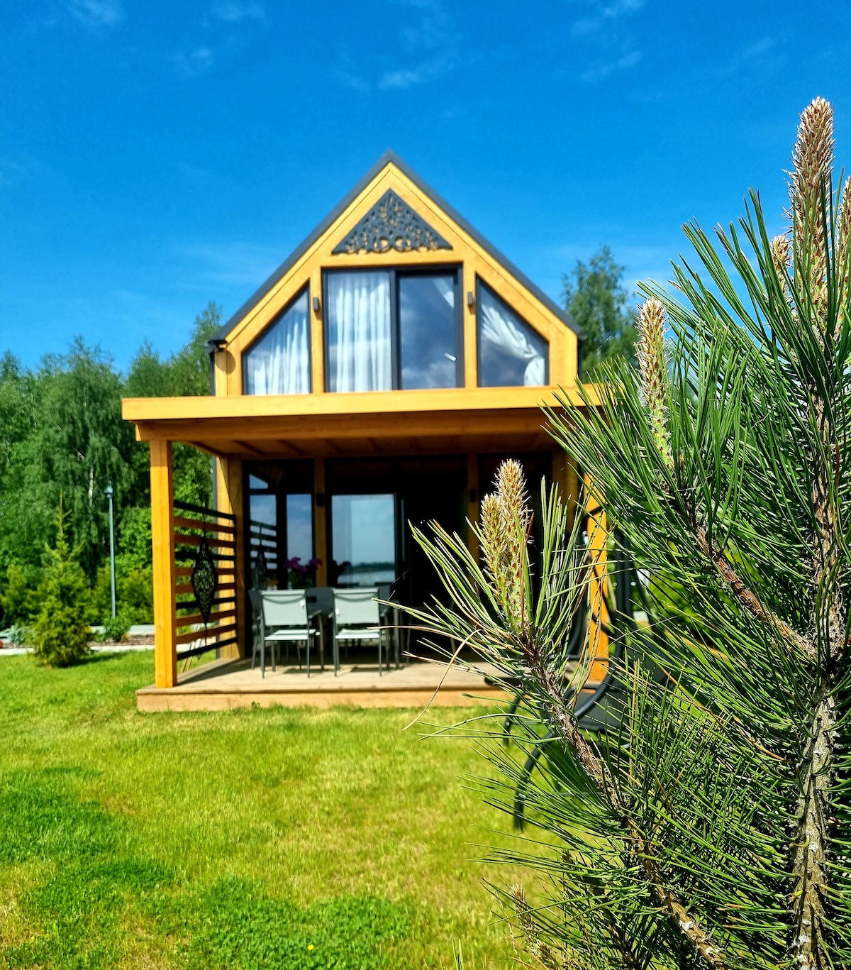 Domki Skorupki to kameralna osada 10 eleganckich domków wypoczynkowych, położona w miejscowości Skorupki, w jednej z najbardziej spokojnych i zielonych części Mazur. To propozycja dla gości, którzy cenią przestrzeń, prywatność i wysoki standard, a jednocześnie chcą pozostać blisko natury. Domki zlokalizowane są ok. 350 metrów od jeziora, a do dyspozycji gości oddany jest wydzielony, prywatny teren rekreacyjny nad wodą.