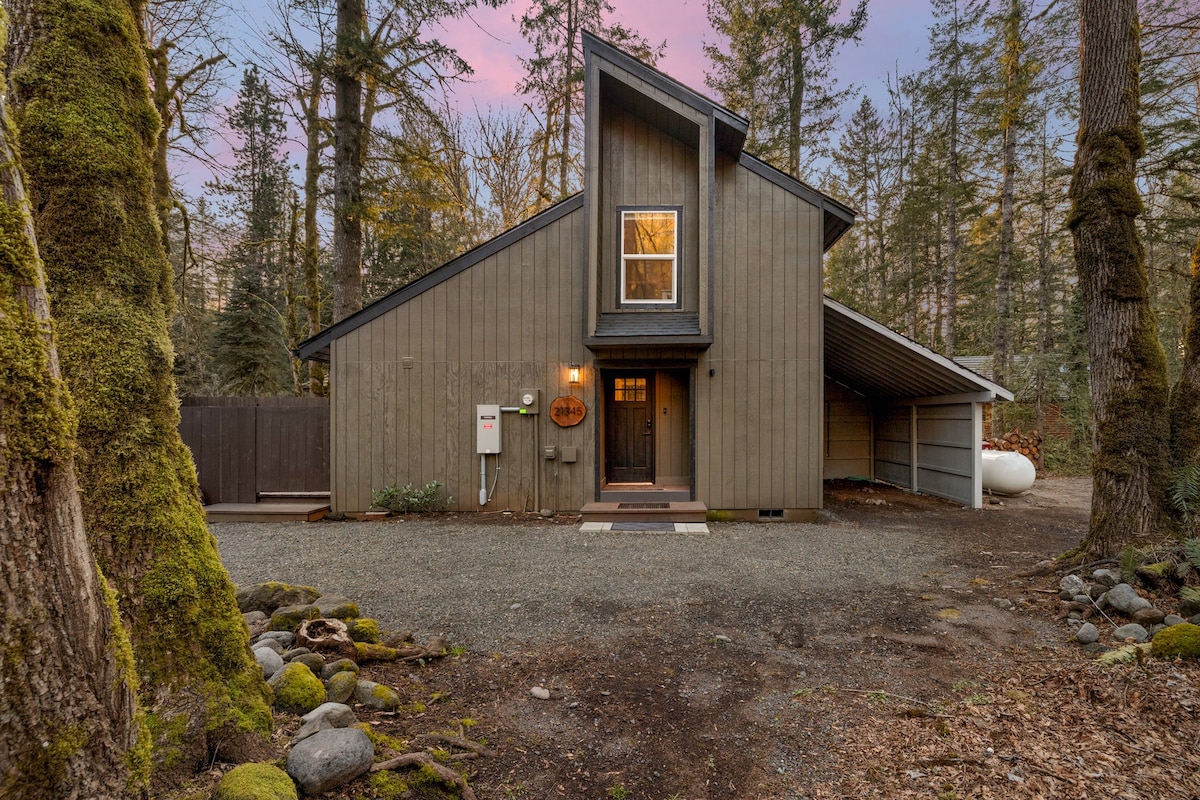 This magical cabin is nestled near the Sandy River on the edge of Mount Hood National Forest. A mountain oasis offering all of the amenities of home yet tucked in the heart of the forest. The enchanting backyard offers seasonal creeks that invite you to miles of hiking trails and beaches. Unwind by the cozy fire, relax in the hot tub or soak up the soothing sounds from the nearby Sandy River. Skiing/snowshoeing/mountain biking/kayaking/waterfalls... a perfect mix of adventure and tranquility.