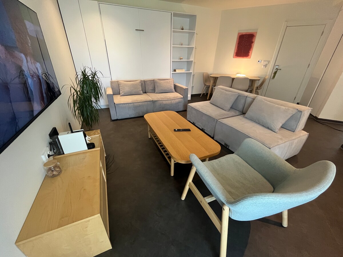 Nuestros apartamentos, que tienen un jardín especialmente amueblado en su terraza, ofrecen un alojamiento cómodo para un máximo de 4 personas y te ofrecen unas vacaciones cómodas. Hay 1 cama doble en el dormitorio y otra cama doble que se abre desde la pared en la sala de estar. Las cocinas totalmente equipadas tienen todo el equipo que necesitas para cocinar. Haz que tus vacaciones sean inolvidables con la máquina de café en cápsula Nespresso, TV inteligente de 55 pantallas...