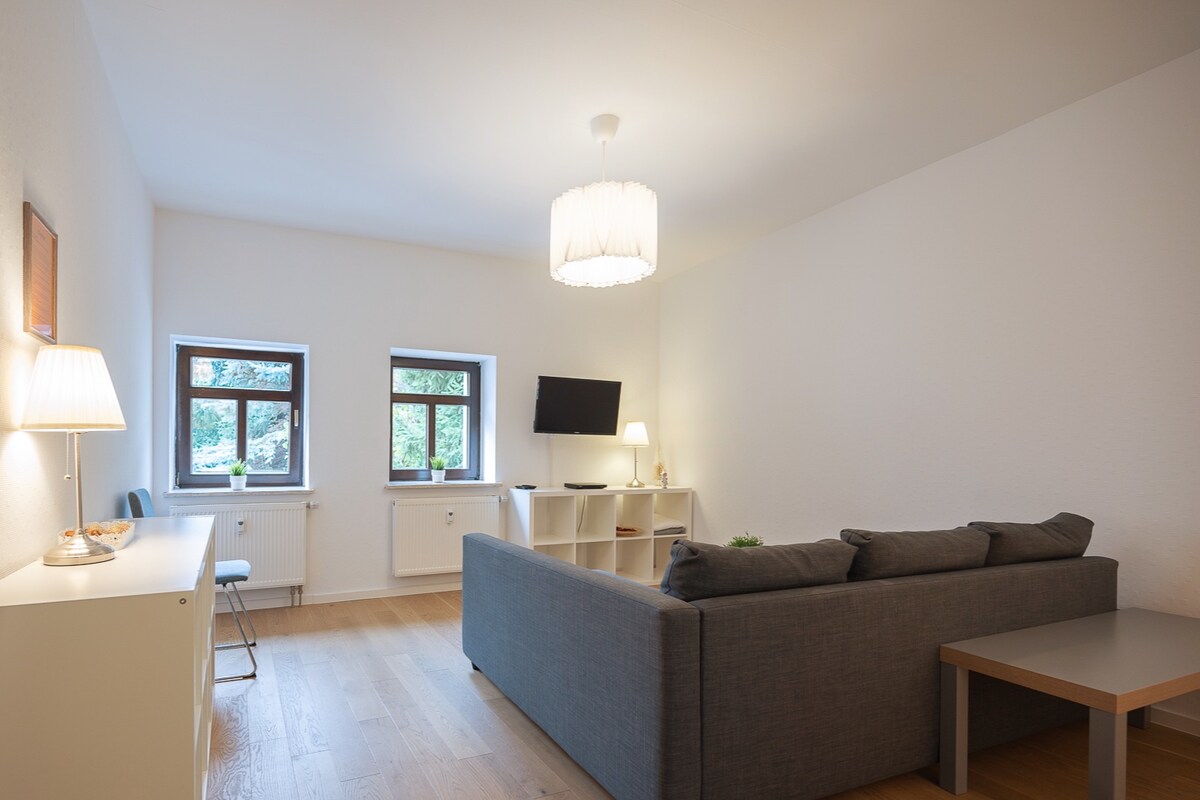 15 minutes by bus to the Christmas market (Striezelmarkt) in Dresden. 40 minutes to the ski slopes in the Ore Mountains (Altenberg). Special rates available on request for quiet groups and families :) Also suitable for up to 8 people! Wellness Facilities: Enjoy a first-class wellness weekend at my house with a sauna, a year-round heated whirlpool (up to 42°C), and a pool (cold plunge). Basics: You can expect bathrobes, towels, complimentary coffee, and a selection of herbs and spices.