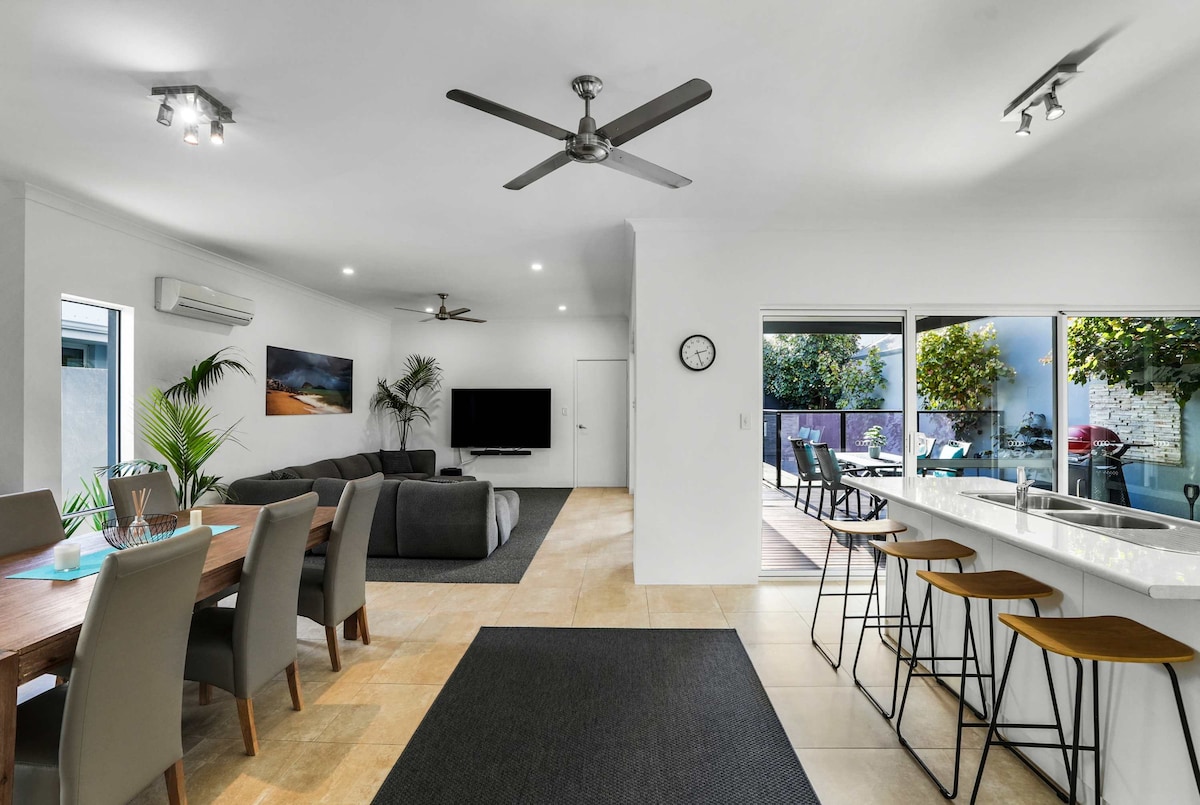 Impresionante retiro en una casa de playa con una piscina privada totalmente vallada y un gran jardín cerrado ideal para que los niños corran Escápate a esta serena casa de playa, la escapada perfecta para familias que buscan relajación y comodidad. Ubicado a pocos pasos o a 2 minutos en auto de Scarborough Beach, tendrás cafeterías, restaurantes, tiendas y lugares de entretenimiento justo a la vuelta de la esquina, este hermoso refugio ofrece todo lo que necesitas para una estancia inolvidable.