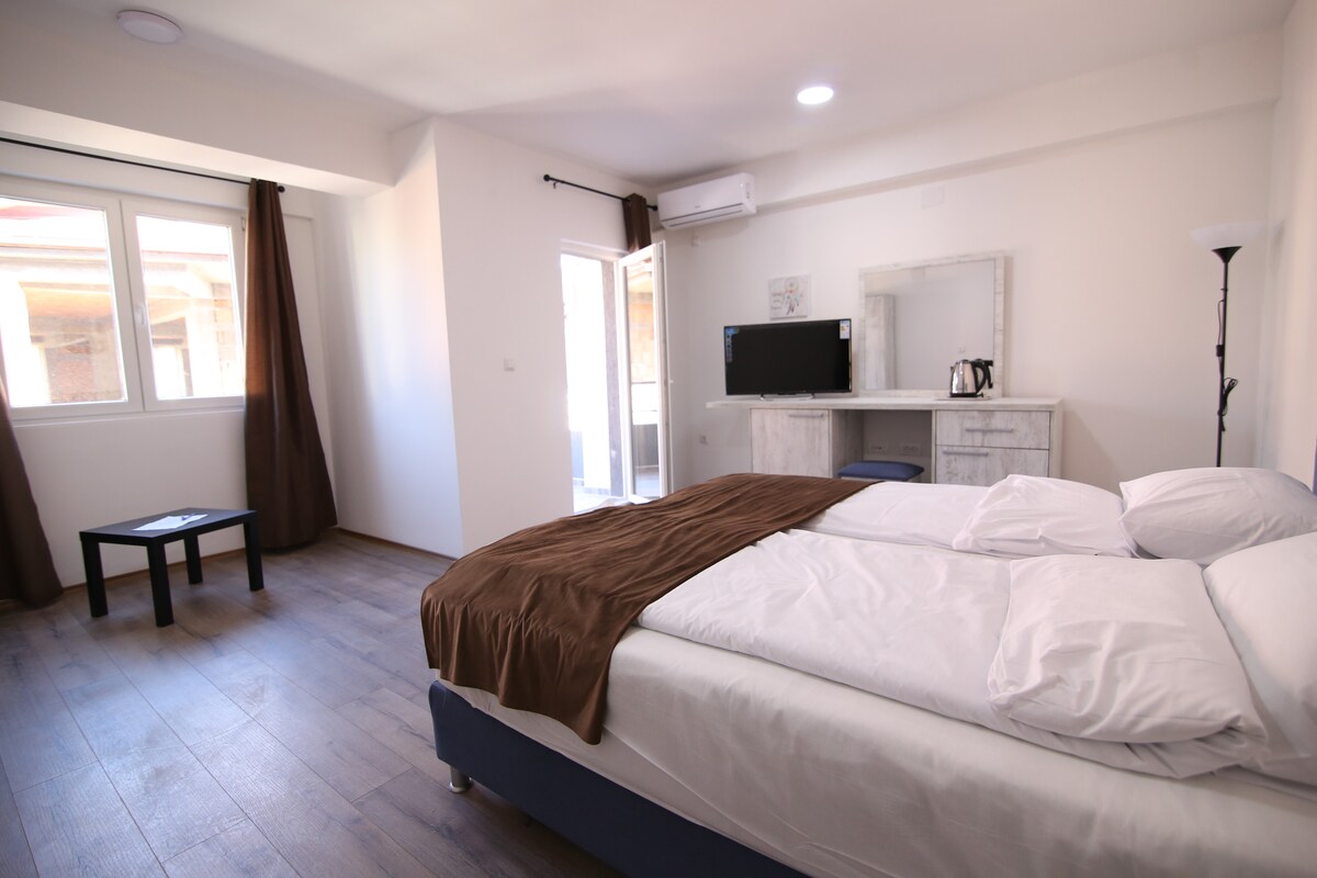 Truth Apartment Veles | Modern, cozy, and perfectly located in the heart of Veles, yet hidden in a private and peaceful spot. Enjoy full privacy with the entire apartment to yourself, ideal for up to 4 guests. Fast WiFi, air-conditioning, Google TV with Netflix app, fully equipped kitchen and modern bathroom included. Mini market and top grill just 10m away. FREE parking around the building + large FREE parking lot 100m away. Central location with zero noise - relax and enjoy your stay.