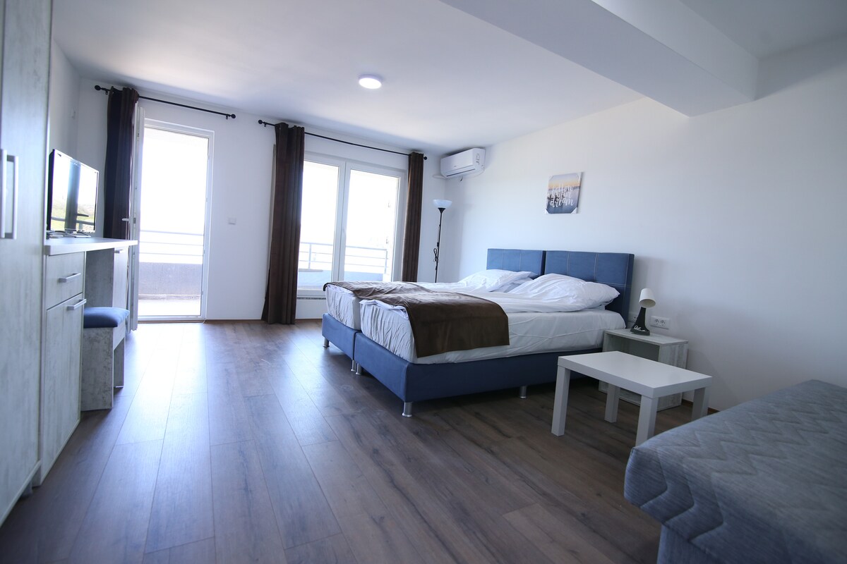 El apartamento se encuentra cerca del centro de la ciudad y la estación de autobuses.También hay un mercado de comestibles en el edificio y un lavadero de coches al otro lado de la calle.El centro de la ciudad está a 10 minutos a pie y la estación de autobuses está situada a tan solo 500 m.El apartamento está totalmente equipado con una cocina totalmente funcional,baño con bañera de hidromasaje, TV e Internet con conexión Wi-Fi personal y un hermoso balcón con vistas al río.