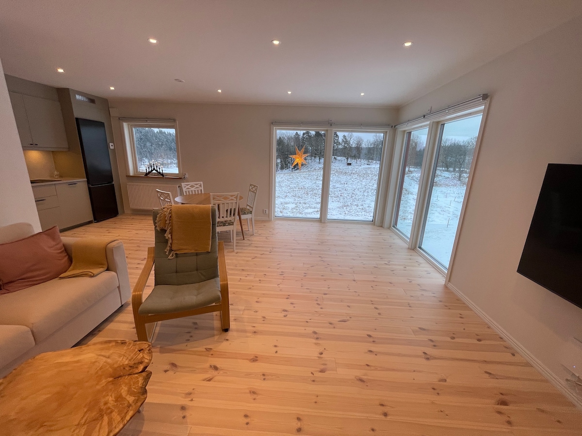 Bienvenido a esta maravillosa casa que combina el confort moderno con un ambiente tranquilo y relajado rodeado de vegetación. Perfecto para familias o parejas que quieran disfrutar de una estancia relajante. La casa está recién construida y tiene todas las comodidades. Amplia zona de aparcamiento con caja de carga de 11 Kw disponible. A 150 metros de la casa, hay un lago con una zona de baño acogedora y apta para niños que es muy popular en verano. La reserva natural de Herrestadsfjället con Bohusleden también está cerca.