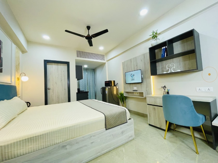 Luxe Spacious Studio by CASA NESTA at main mahal road • 43 inch Sony Smart TV with OTT subscriptions included • High-speed 100 MBPS WI-FI • Oil Heater • Toiletries • Includes COFFEE MACHINE, AIR FRYER,Toaster, cookware & utensils • Fridge, kettle, Microwave & all basic cooking essentials • Beautiful aesthetic mirror ideal for pictures and couple moments 24×7 food delivery available via Zomato & Swiggy • 24×7 cab & bike services available (Ola ,Uber,Rapido)