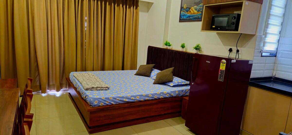 Bienvenido a The City Nook, un estudio totalmente amueblado en Jagatpura, Jaipur. Perfecto para viajeros solitarios, parejas, huéspedes de negocios y visitantes médicos. Este tranquilo refugio está situado cerca del Hospital de Bombay, con fácil acceso a los puntos de interés de la ciudad. Qué obtendrás 🛏️ Cama doble Wifi 📶 rápido y zona de trabajo 🍳 Cocina pequeña: nevera, hervidor, cocina de inducción, utensilios de cocina 🛁 Baño con agua caliente y artículos esenciales ❄️ Aire acondicionado 📺 TV Llegada ✅ autónoma con caja de seguridad para llaves Juegos de🏋️ interior y gimnasio 🅿️ Aparcamiento ¡Reserva tu estancia ahora!