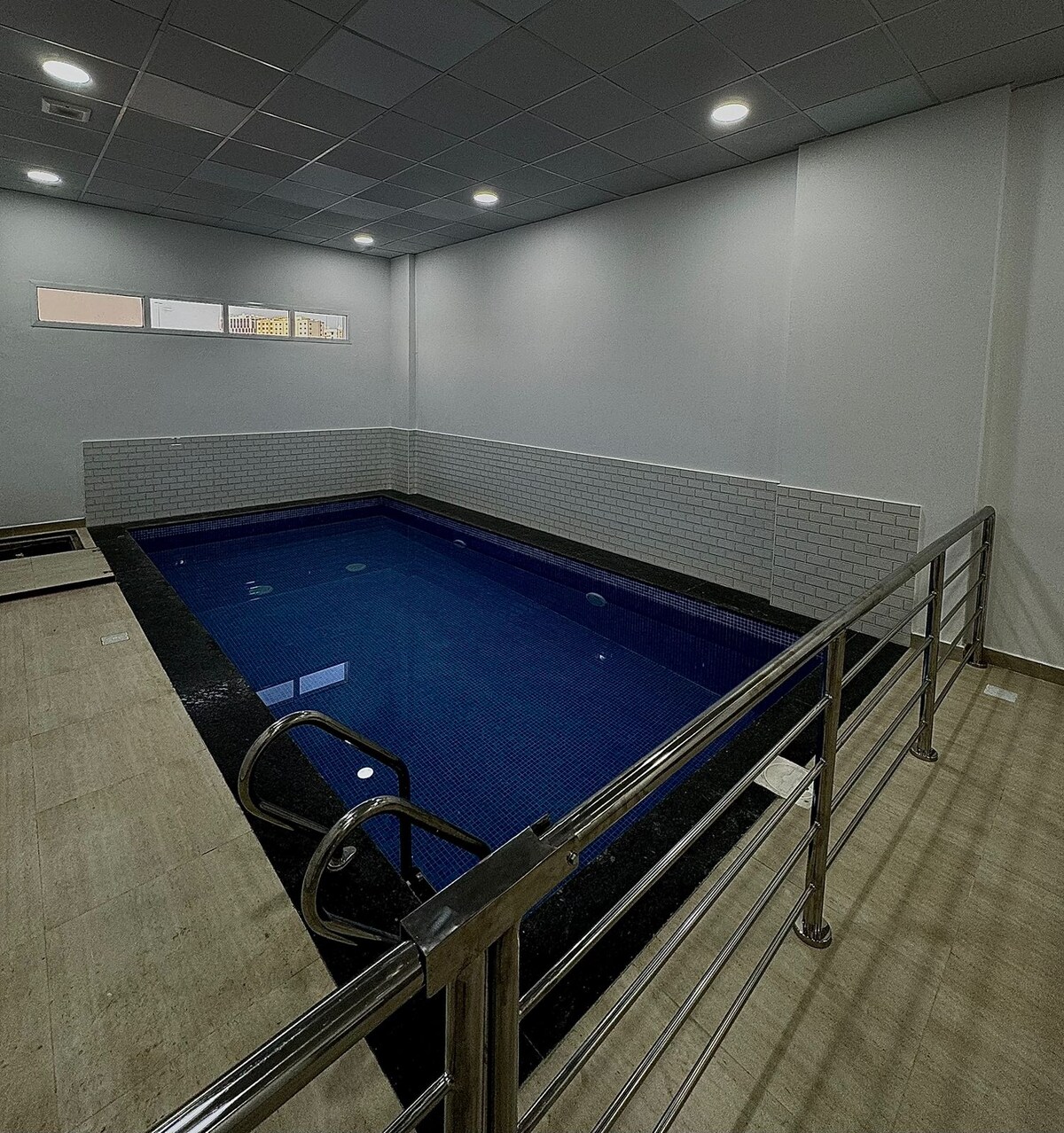 Disfruta de paz y relajación con tu familia en esta tranquila residencia. Cuenta con piscina privada y aparcamiento privado. Se encuentra a 25 minutos del aeropuerto de Mascate. Hay un supermercado Nesto cerca, a solo dos minutos. También hay una barbería, una farmacia y una lavandería. También está a 15 minutos de la playa. Ofrecemos servicio de limpieza diario gratuito Mantén el lugar limpio El lugar