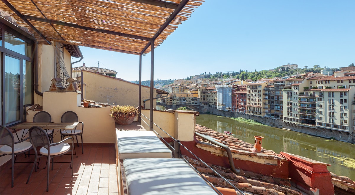 Terraza mágica en Ponte Vecchio, ¡vista increíble!