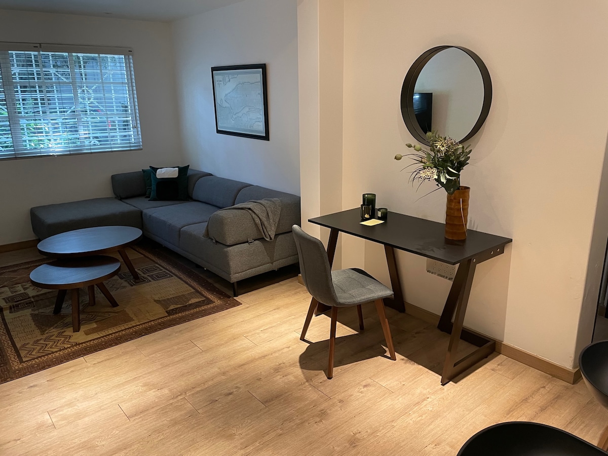 A unos pasos de Av. Paseo de la Reforma y detrás de la embajada de Estados Unidos, se encuentra un edificio con 12 suites recientemente remodeladas. La suite cuenta con cama Queen Size, una pequeña cocina equipada con todo lo que necesitas, internet de alta velocidad para poder trabajar vía remota y servicios de streaming. Cerca de una zona de muchos restaurantes, a unos pasos del Ángel de la Independencia y cerca del bosque de Chapultepec.