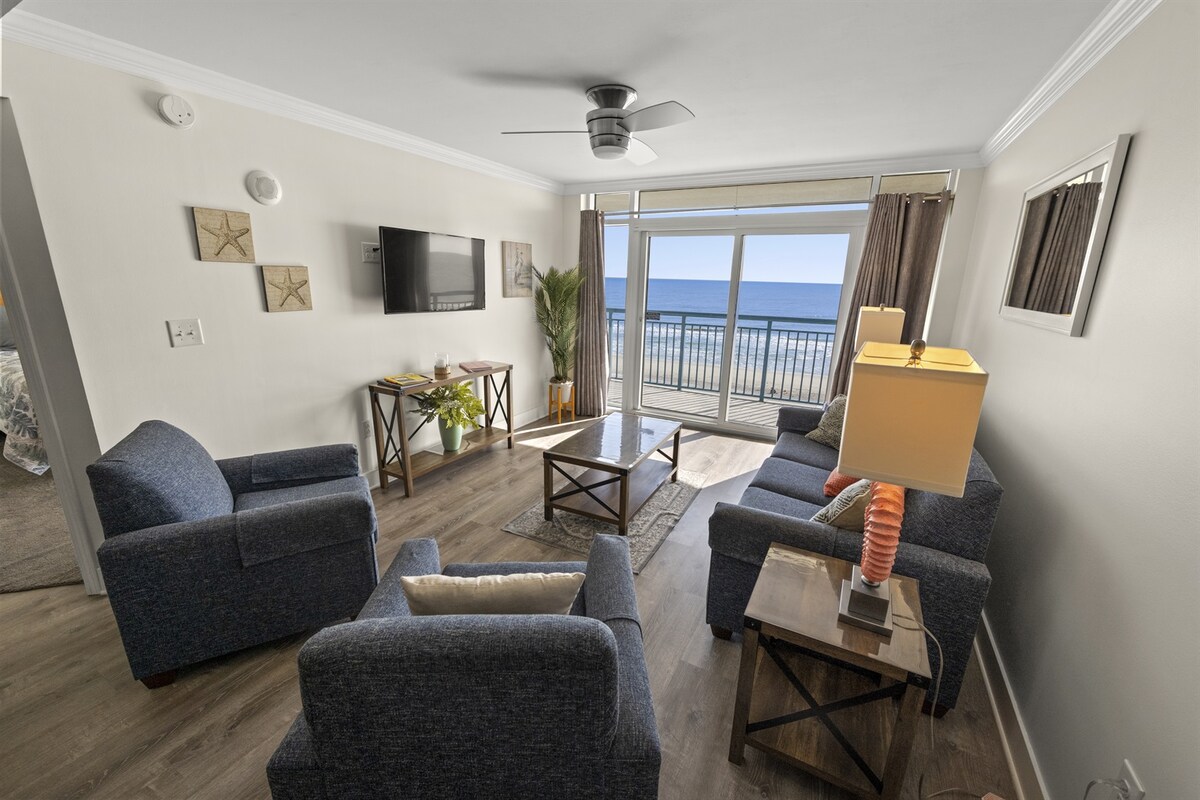 Relájate en este apartamento actualizado frente al mar en Beach Colony Resort. Con muebles modernos, una lujosa cama tamaño king, sofá cama, cocina totalmente equipada y un espacioso baño, este refugio tiene todo lo que necesitas para una escapada tranquila. El resort tiene algo para todos con comodidades como piscinas cubiertas y al aire libre climatizadas, jacuzzis, río lento, bar tiki, restaurante, cafetería y tiendas de regalos, gimnasio, sauna, sala de juegos y hermosos jardines con sombrillas, hamacas, tumbonas y columpios.