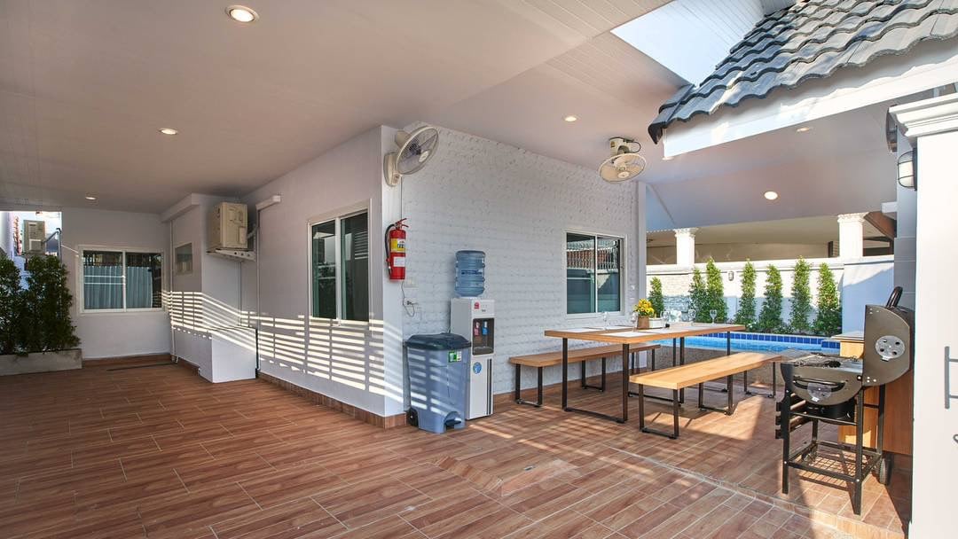 Cerca del centro de Pattaya, villa de 6 dormitorios con piscina privada, a pocos minutos de la playa / ciudad y la calle peatonal. La villa está decorada con buen gusto y tiene una gran sala de estar en forma de L; con muebles modernos y una cocina espaciosa, equipada con una gran nevera, máquina de hielo, congelador, cocina, arrocera, tostadora, cafetera, microondas, horno y lavadora. La casa está totalmente climatizada y tiene WIFI de alta velocidad GRATUITO y Netflix.