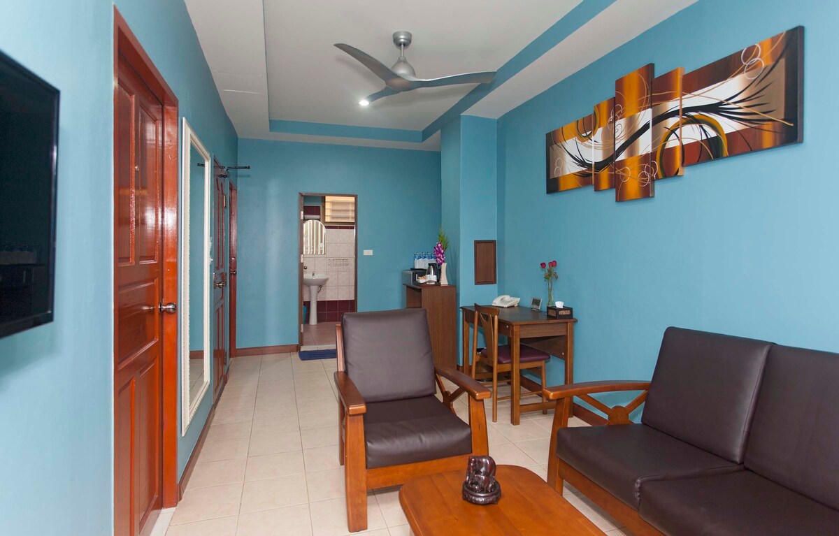 Habitación boutique con todas las instalaciones en el centro de Pattaya. Refrigerador de TV por cable, internet wifi, toalla de aire acondicionado y desayuno privado y tranquilo.
