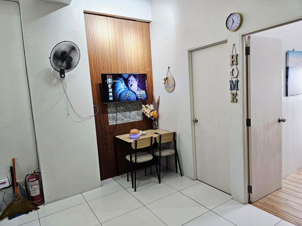 Suite La Joya: tu estancia de ensueño en Naga City, Camarines Sur Disfruta de lo mejor de la ciudad de Naga con este elegante y moderno condominio ubicado en Deca Sentrio, cerca de SM Naga. Disfruta de un fácil acceso a tiendas, restaurantes y entretenimiento. El condominio cuenta con un interior recientemente renovado con una zona de dormitorio de planta abierta, un cómodo sofá, mesa de comedor, TV inteligente de 55 pulgadas, cocina totalmente equipada y un amplio balcón.