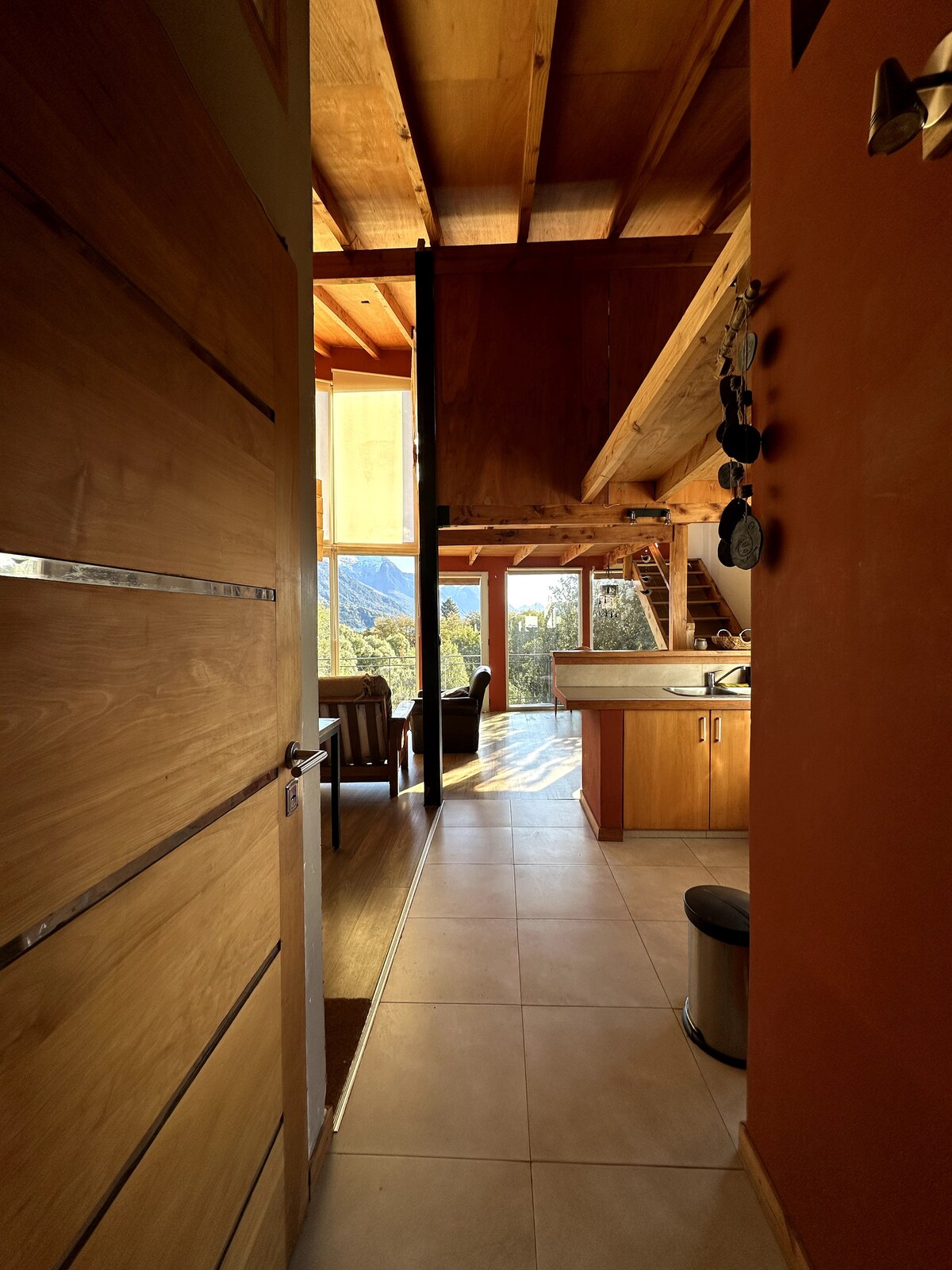 Loft de arquitectura moderna, con espacios integrados, amplios y grandes ventanales que permiten disfrutar desde el interior la imponente naturaleza. Estar, cocina y comedor integrados, cocina totalmente equipada para 5 personas En el estar, hay un futón que se transforma en cama de 2 plazas más una cama individual. El entrepiso cuenta con un sommier de dos plazas .
