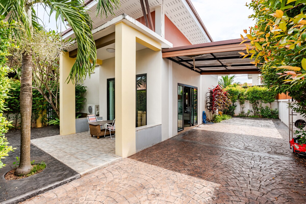 Una casa adosada de un piso con un jardín alrededor de la casa sombreada en Soi Don Nok 23, frente al distrito, cerca del mercado Don Nok, un estadio, una cancha de bádminton, cerca de restaurantes, se puede caminar, comer, probar, comprar, muchas tiendas, a 500 metros del centro de la ciudad, los huéspedes pueden cocinar, totalmente equipado, adecuado para la familia de las motos.