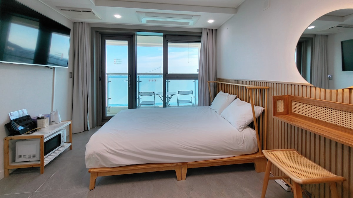 Nuevo abierto el 28 y✨ 24 de julio ✨Todas las habitaciones con terraza y vista al mar Camas Sealy de primera categoría para✨ la máxima relajación Café cápsula de granos frescos tostado directamente en una famosa cafetería en✨ Corea (¡hecho por sí mismo!) Ubicado ✨justo al lado de Songdo Cable Car, cerca de Songdo Beach. ❤️La habitación está asignada al azar, así que ten en cuenta que el interior y el número de pisos pueden diferir de las fotos. 📺Electrónica: TV con Netflix (con tu propia cuenta), wifi gratuito, aire acondicionado individual, purificador de aire, almohadilla de pared, nevera, cafetera Nespresso, hervidor eléctrico, inducción 🍳Utensilios de cocina: utensilios básicos de cocina y vajilla, copas de vino, detergente de cocina y esponja 🛁Artículos básicos de baño: champú, acondicionador, gel de baño, jabón de agua, toalla, secador de pelo, alisador de pelo