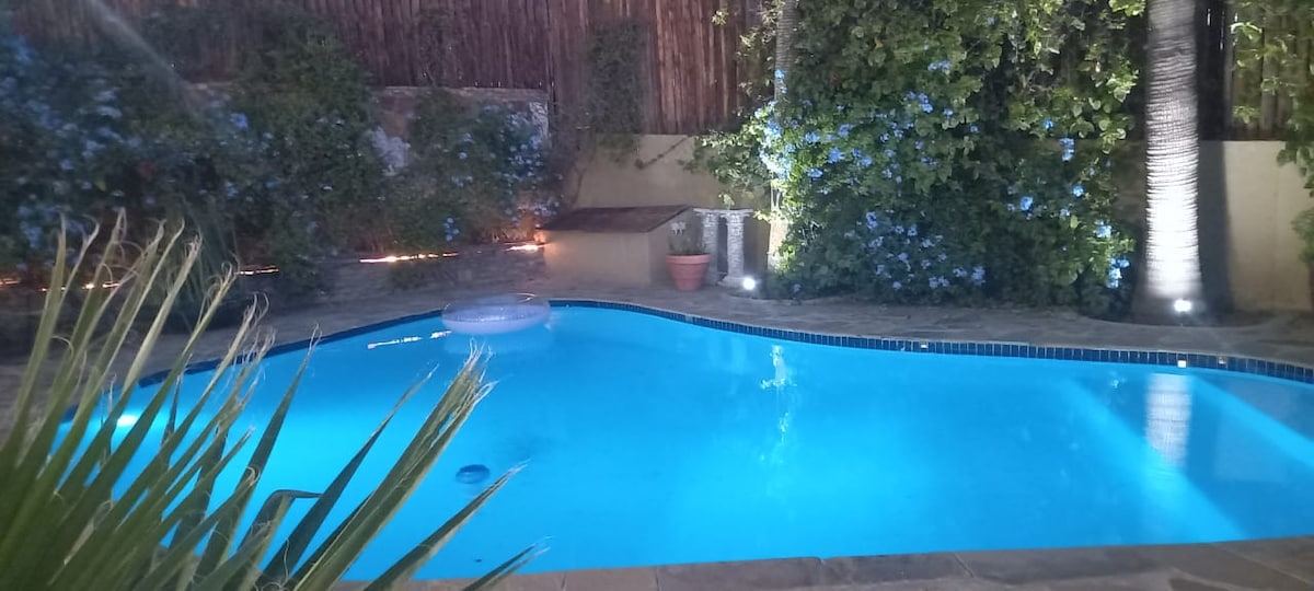 Ven y relájate en nuestra lujosa villa independiente exquisitamente decorada que se encuentra en un tranquilo jardín con una piscina cristalina. La villa ofrece: Cama tamaño❤ queen con sábanas de lujo. Baño ❤completo (ducha y bañera) Wifi ❤superrápido. Cocina americana❤ equipada. Café, té, biscotes y agua de❤ cortesía ❤DSTV/NETFLIX ❤Mucho aparcamiento seguro Patio ❤privado vestido con románticas tiras de luces ❤BBQ ❤Fácil acceso a las mejores atracciones de Windhoek. Ven y disfruta de una estancia tranquila y relajante con nosotros.