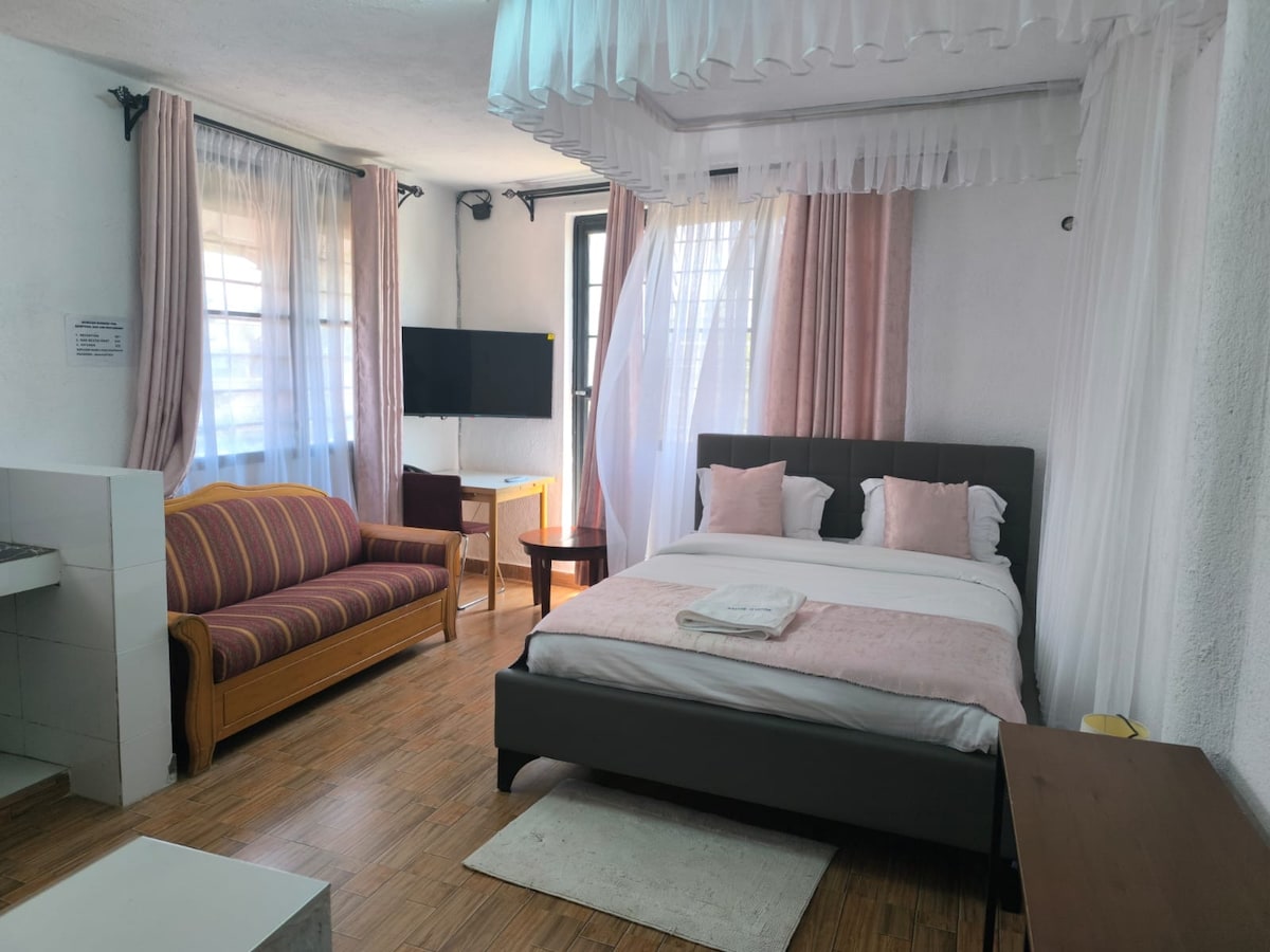 Enjoy a peaceful stay in this modern, cozy one-bedroom apartment in Kisumu. It features a comfy queen bed, smart TV, fast Wi-Fi, a fully equipped kitchen, hot shower and a bright relaxing living area. Set in a secure, quiet neighborhood with easy access to shops, restaurants and transport, perfect for business or leisure stays.