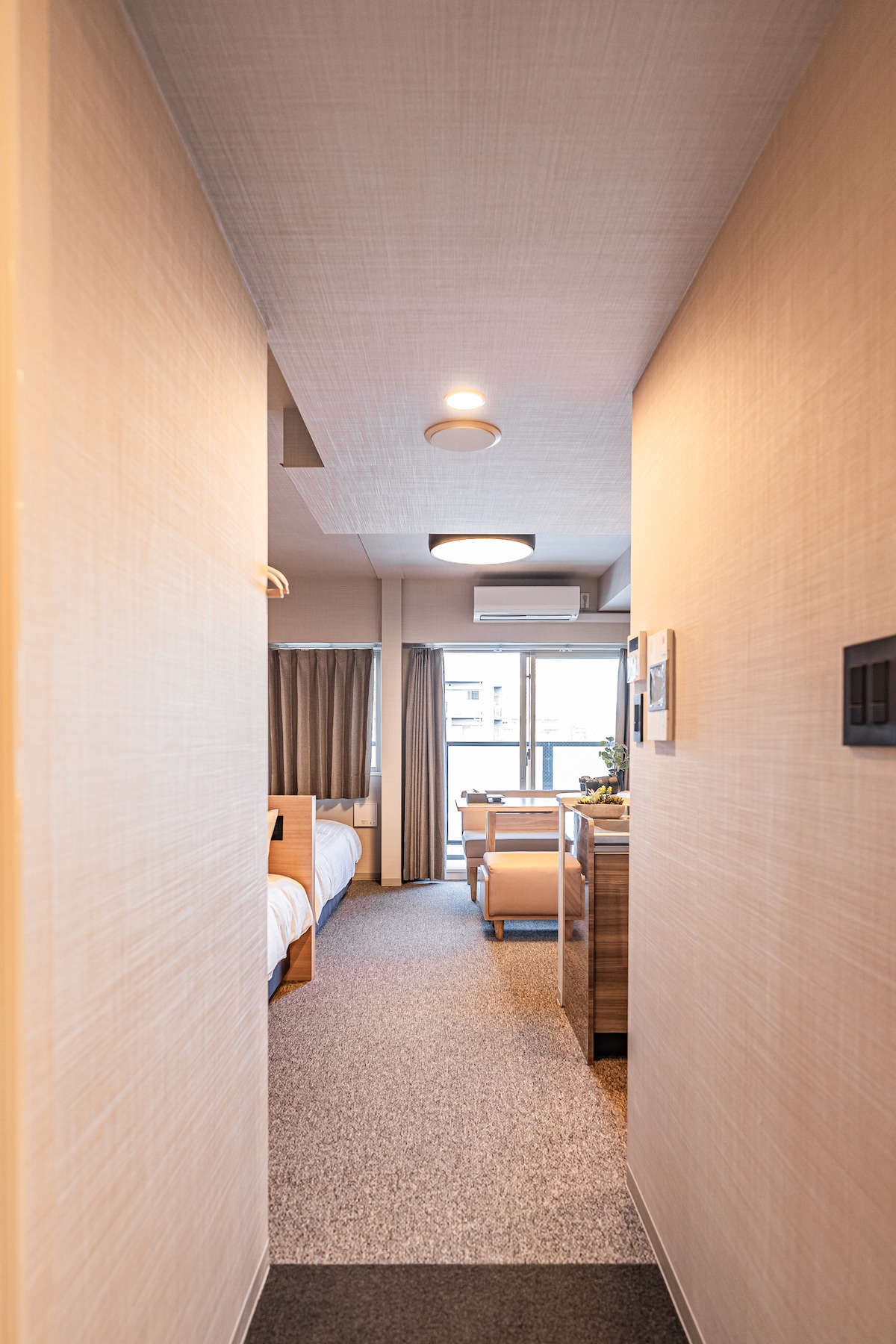 La habitación tiene 31 m2, limpia y acogedora, ubicada a 2 minutos a pie de la estación de metro y la parada de autobús directo al aeropuerto, a 3 minutos. Namba y Dotonbori a 5 minutos en metro. Este edificio se encuentra en el centro de la ciudad, puede sonar el ruido del tráfico y la construcción durante el día. La policía y sirena de ambulancia incluso a medianoche. Sobre la cuna, cuesta 1000 yenes por 1 noche, la silla de bebé cuesta 1000 yenes por tu estancia. Si los niños ensucian mucho la alfombra y la pared, se añadirá un cargo de limpieza adicional (5000 yenes) Este edificio tiene ascensor hasta la habitación.