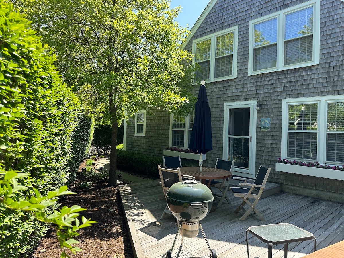 Stylish AIR-CONDITIONED 'Sconset Center cottage with old island charm...sleeps up to 4! Private, set back from the street, and surrounded by tall hedges. Pristine, decorated with country pine antiques. Spacious with cathedral ceiling. Up-to-date kitchen with granite counters and microwave. Queen main bedroom and a walk-around loft with two twins. Fully equipped with linens, Wi-Fi, 55'' SMART TV, W/D, large sunny deck, beach chairs, Weber grill, outdoor shower, and a bike rack. Very nice!!!
