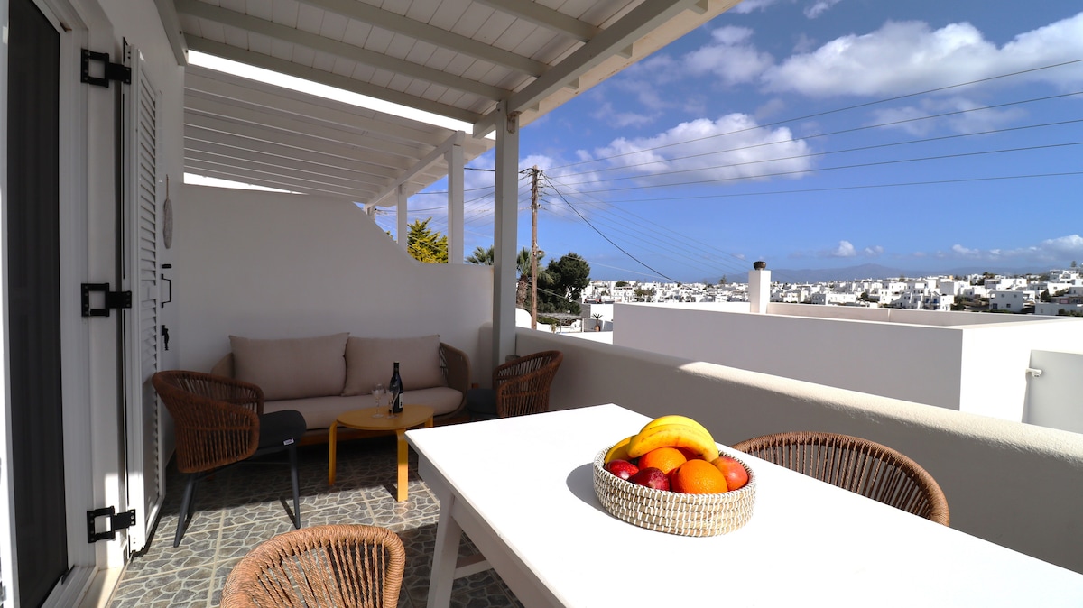 Sunset Smiles in Naousa, is a recently refurbished modern apartment with 2 bedrooms and 1 bathroom. It's location is ideal, as you are just 5-mins on foot away from the cosmopolitan center of Naousa and you can leave your car at the parking space, which is very important during the high season! Restaurants, super market, coffee shops and bakery are all around the corner. Enjoy a relaxing space with all modern amenities, proximity to all of Naousas' places of interest, privacy and Sunset view!