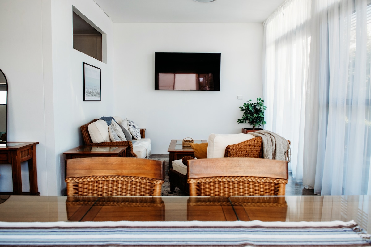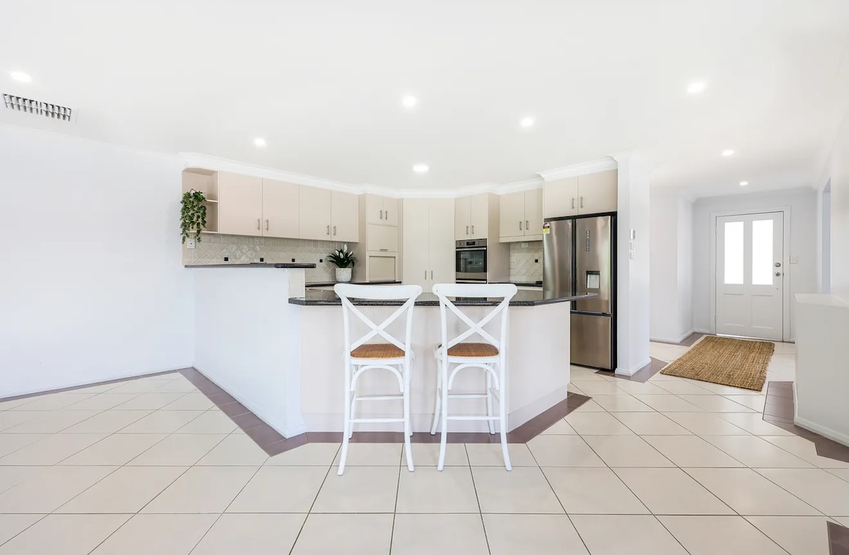Kurrajong Lodge es una casa moderna y espaciosa en un acre de césped en un entorno semirural tranquilo. Disfruta de una piscina de agua salada espumosa exclusivamente tuya y cuatro dormitorios recién alfombrados (a partir de julio de 2022), cada uno con su propio aire acondicionado de sistema dividido. Con una acogedora chimenea de gas, seis sistemas de aire acondicionado y refrigeración por evaporación, la comodidad está garantizada durante todo el año. A pocos minutos del vibrante corazón de Tamworth, esta lujosa casa ofrece la escapada perfecta. Nota: No se permiten fiestas.