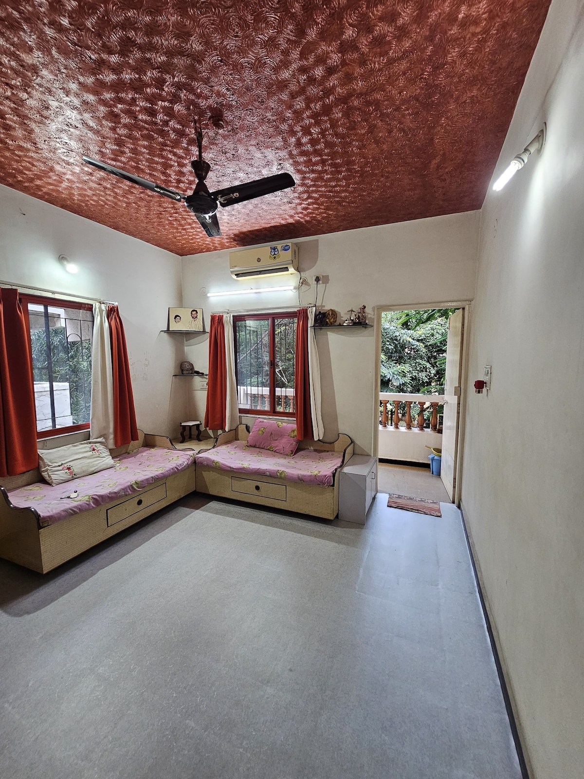 Apartamento familiar de 2 dormitorios, 2 baños, salón, cocina con buena luz diurna y 1 aire acondicionado en el dormitorio principal. A 1 km de la autopista Mumbai Agra hacia la carretera Pathardi phata. A 29 km del templo de Trimbakeshwar, que tarda 45 minutos, a 10 km de la estación de Nashik. Estacionamiento para 4 ruedas. Estrictamente para parejas casadas o familias, con documentos de identidad con foto y deben coincidir. Se admiten mascotas. Wifi de 50 Mbps, TV inteligente LED de 32 pulgadas, nevera, filtro de agua y elementos básicos de cocina. Plancha de ropa bajo demanda. Descuento por estancia larga