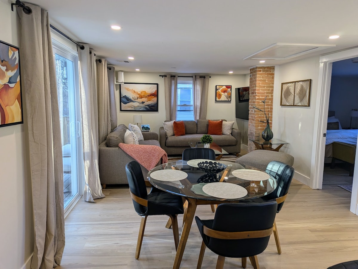 Este elegante lugar privado es perfecto para una pareja, una familia pequeña o grupos de 4 personas. A pocos minutos de Boston o de la costa norte. Viaja en auto, Uber o tren local para disfrutar de excursiones a Boston, brujas de Salem, antigüedades de Cape Ann, playas de arena, miradores de hojas de otoño, esquí, lugares de interés histórico, eventos deportivos, graduaciones y terapia minorista en centros comerciales cercanos, outlets o la icónica Newbury St. Una multitud de restaurantes y cervecerías locales y de la ciudad ofrecen una variedad de opciones para tu placer. ¡YMCA al lado!