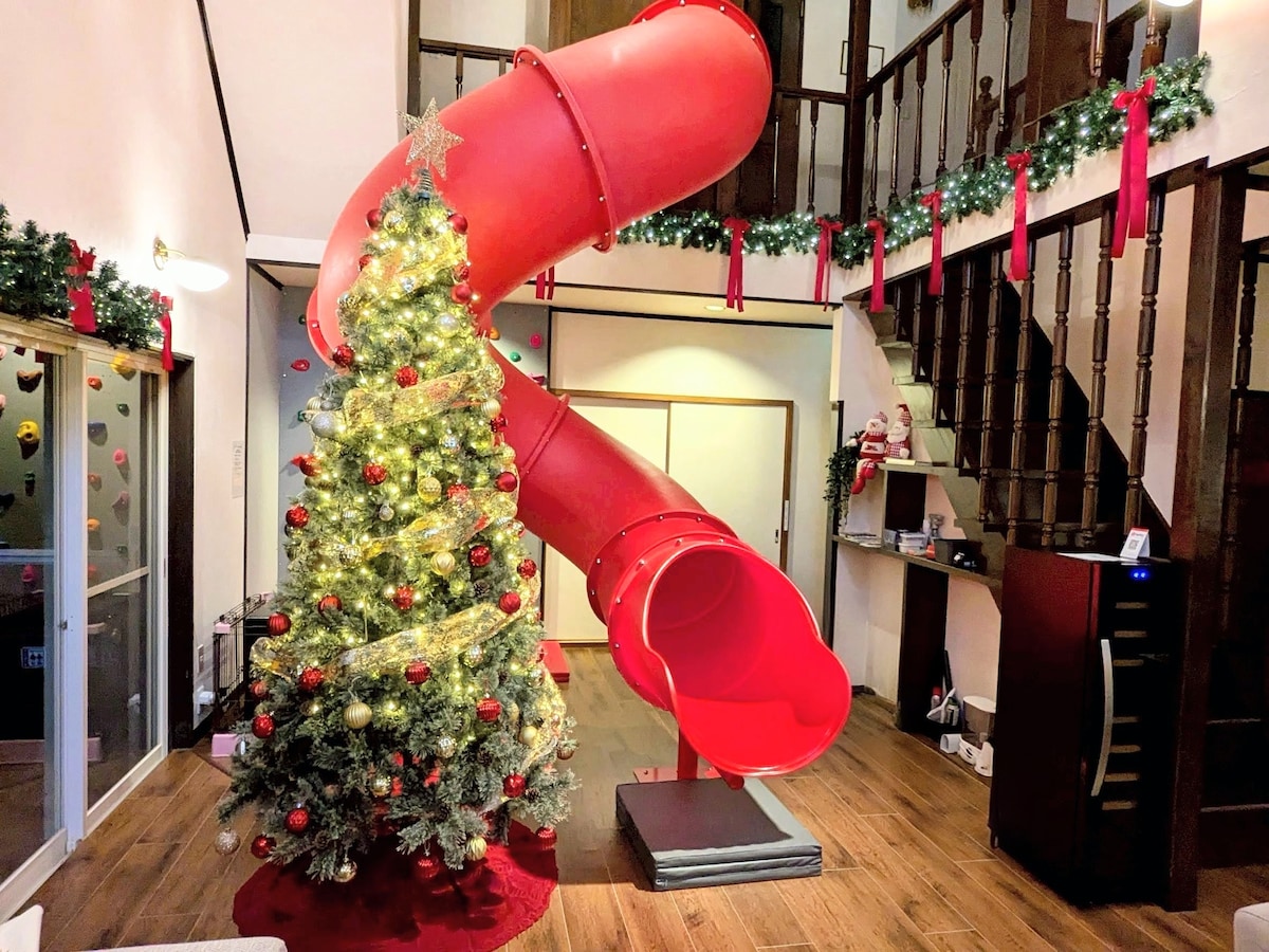 Alquiler vacacional en la naturaleza en una base secreta en el bosque. [Travel space Villa Nasu Kogen] es una villa privada que puede ser disfrutada tanto por adultos como por niños en la exuberante casa de vacaciones Nasu. Una base secreta para pasar el rato con amigos u esconderte de tus padres para hablar con tus amigos. Sigue cada camino, reúnete con tus amigos que normalmente no pueden reunirse y tu familia llegará a una base secreta en el bosque. Hay un espacio donde puedes jugar duro, hablar como lo hiciste en esos días y hacer sonreír a adultos y niños. La cubierta de madera techada está equipada con una parrilla de gas de estilo americano. También puedes disfrutar de una barbacoa al aire libre en el bosque, y también podrás conversar con la naturaleza. También puedes bañarte en el baño boscoso desde las grandes ventanas. Relájate y respira hondo en la bañera para alejarte del ajetreo de la vida cotidiana. En el jardín hay columpios y juegos infantiles y en el salón hay un panel de escalada para que los niños puedan jugar con tranquilidad. Mientras sientes las cuatro estaciones de Nasu, puedes buscar bellotas con tus padres e hijos, como algún día.