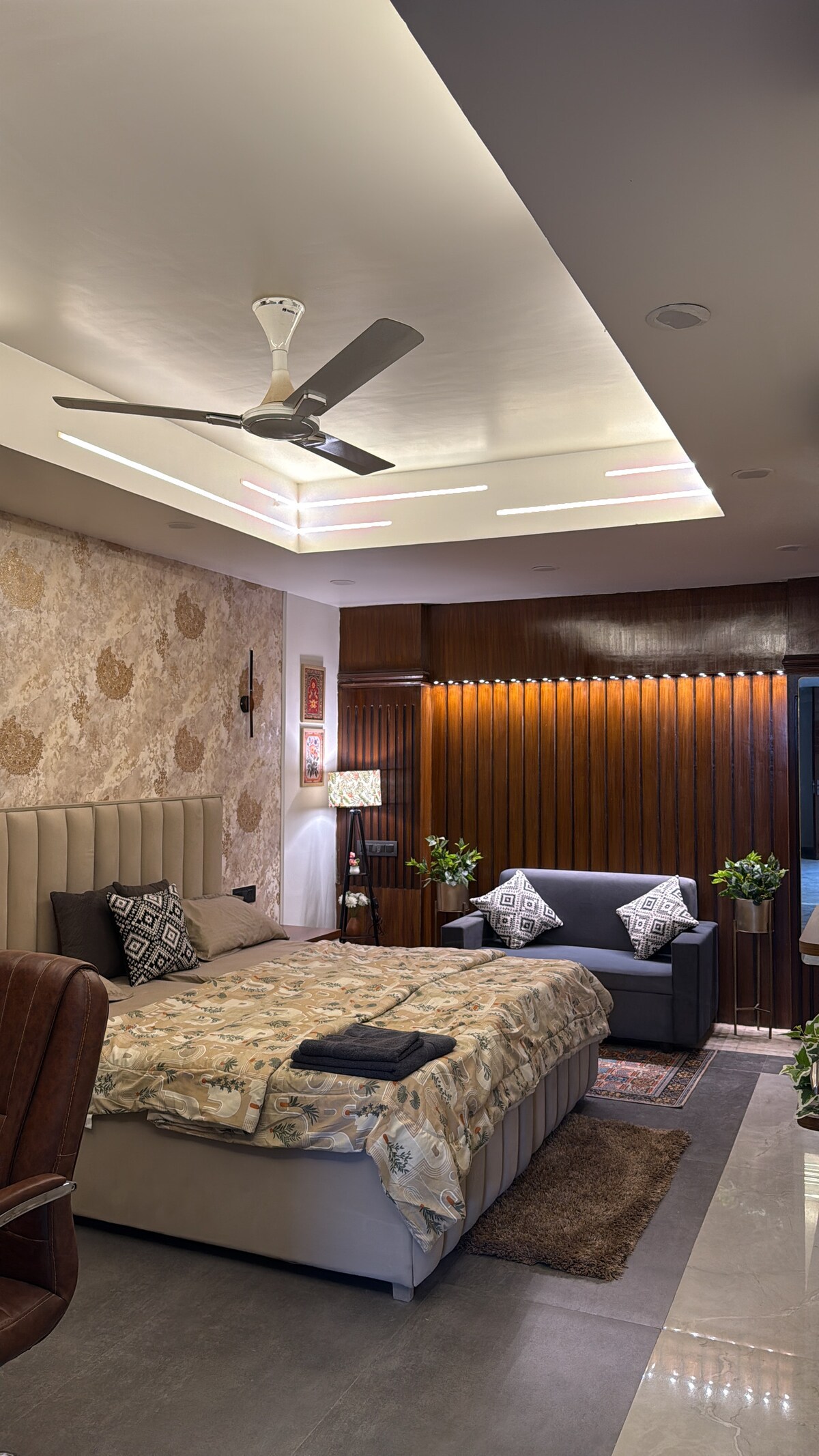 Habitación privada de lujo + despensa y baño (@ Golf Course Road) con acceso independiente desde el bungalow, ubicado en la zona más céntrica y prémium de Gurgaon. * Ambiente hogareño con anfitrión experimentado. * Aparcamiento GRATUITO dentro de las instalaciones. * ¡Limpieza diaria y servicio de limpieza GRATIS! * Wifi GRATUITO, Hotstar y Netflix en Chrome-cast * Respaldo de energía 24 X 7 e iluminación automatizada para mayor comodidad. * A 180 metros del Mega Mall, a 800 metros de la estación de metro de Sikanderpur, a 1,5 km de Cyber City.