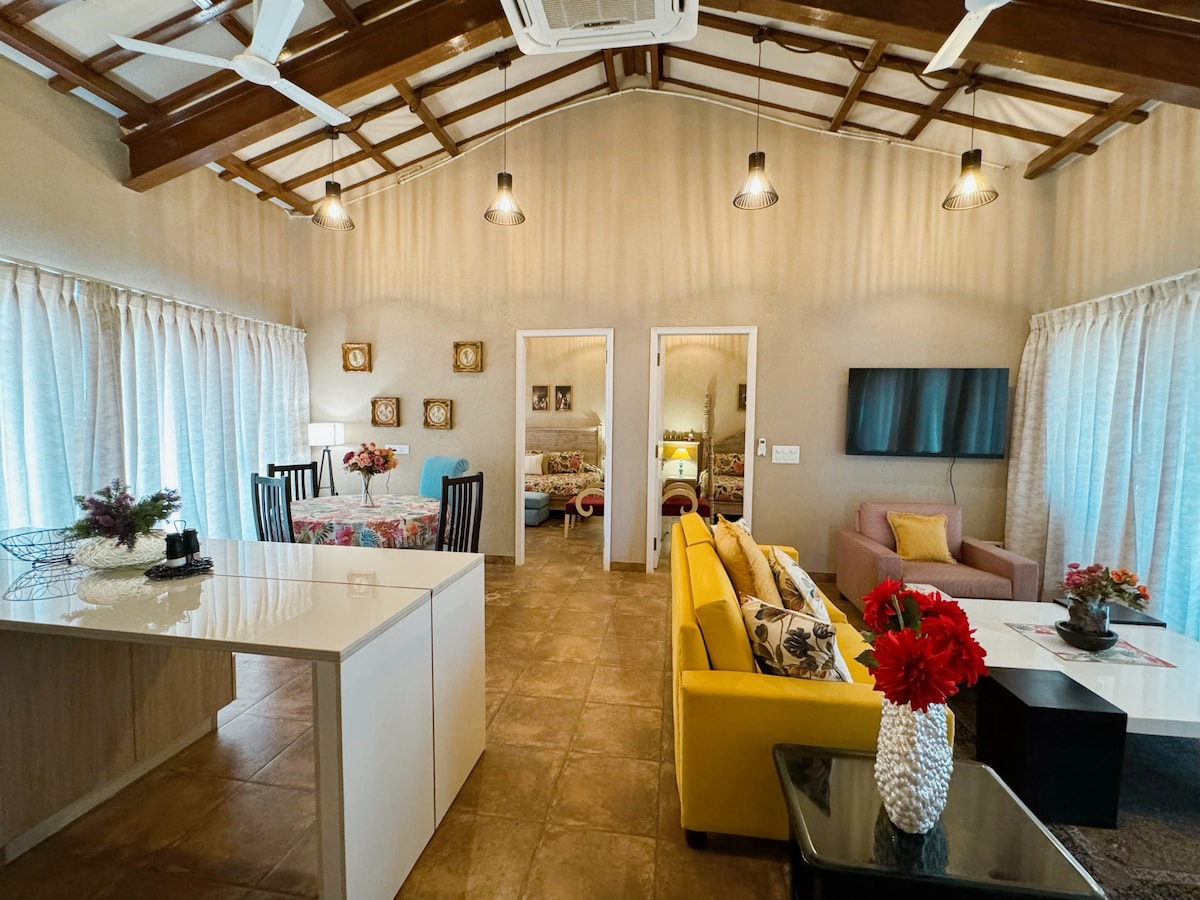 ¿Quieres relacionarte con familiares, amigos o compañeros de trabajo en plena naturaleza en Nueva Delhi? ¿Quieres experimentar la mezcla ideal de encanto y hospitalidad del viejo mundo con todas las comodidades modernas? ¿Deseas dar un paseo por los extensos jardines bajo los árboles frutales o esperar a ver pavos reales? Si la respuesta es SÍ, entonces este apartamento independiente de 3 dormitorios de la villa Shiv Niwas, con balcones privados y terraza en la azotea, cerraduras inteligentes, wifi de alta velocidad en toda la propiedad, aparcamiento gratuito y cuidadosas cocineras, ¡TE ESTÁ ESPERANDO!