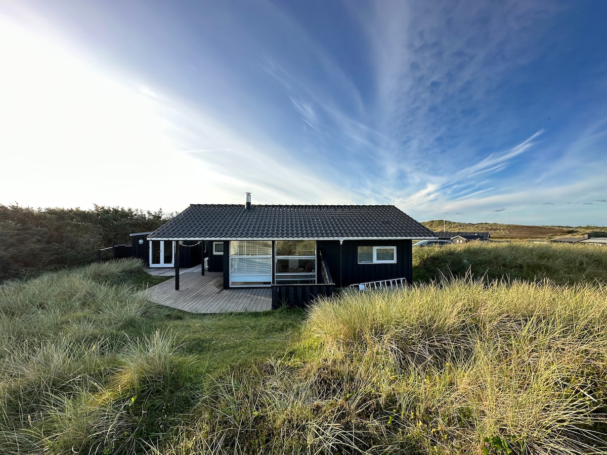 Klitmøller - Ægte Cold Hawaii: Ugeneret, højtbeliggende sommerhus med udsigt, masser af lys og kig til havet fra klittoppen. 🌟 INCL. RENGØRING, STRØM, VAND OG HÅNDKLÆDER. Lej sengetøj for +15 kr/2 euro pp Skønt og rummeligt sommerhus med masser af lys, terrasser og aktivitetsrum. Du hører havet, skimter det mellem klitterne, og der er kun 300 meter på gåben til den brede, rå og smukkeste strand med surfboardet under armen. På toppen af grunden er der 360 graders udsigt fra bunkeren fra WW2