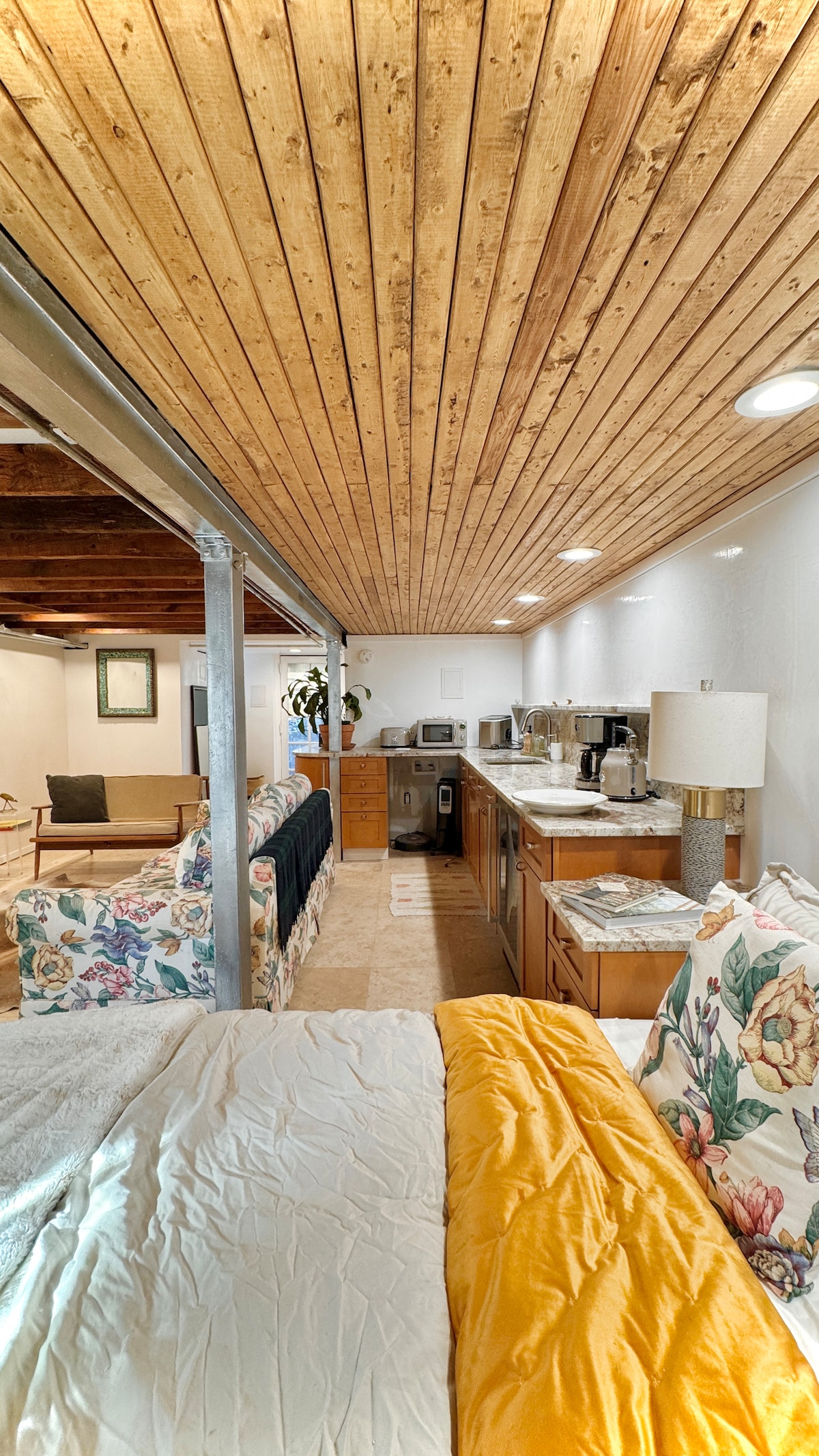 Apartamento privado en el sótano inglés con ventanas de tamaño completo y techos de 8 pies • Entrada privada delantera y trasera con entrada sin llave. • Patio exterior (espacio compartido). • 1 cama tamaño queen • Internet inalámbrico. • Smart TV con Netflix. • Cocina completa con cocina de gas • Máquina Nespresso y hervidor eléctrico. • Toallas y sábanas limpias para 4 personas • Lavadora/secadora. • 2 huéspedes es lo óptimo, pero un tercer huésped podría dormir en el sofá si lo desea.