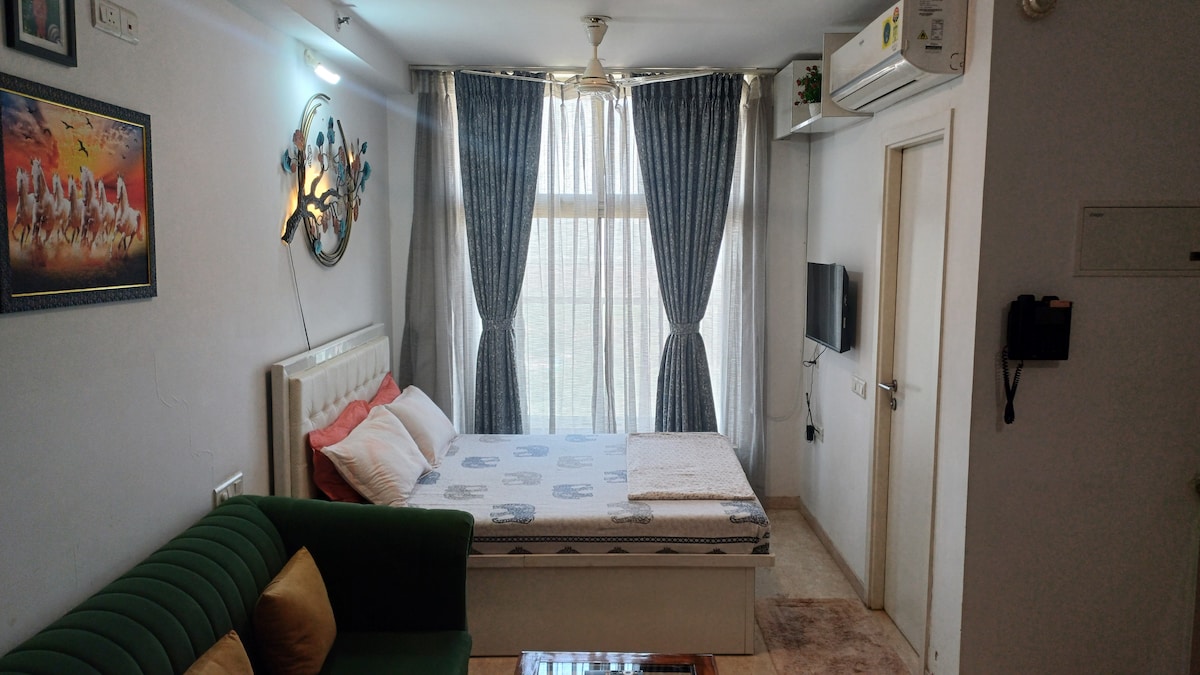 Este lujoso apartamento 3BHK ofrece la combinación perfecta de espacio, estilo y comodidad. Diseñado con interiores elegantes, cada dormitorio tiene un tamaño generoso con lujosas camas, amplio espacio de almacenamiento y abundante luz natural. La moderna sala de estar es perfecta para relajarse o entretenerse, mientras que la cocina totalmente equipada te permite preparar cualquier cosa, desde un desayuno rápido hasta una cena completa. Situado en un barrio elegante con fácil acceso a restaurantes, tiendas y transporte público, tu estancia perfecta comienza aquí.