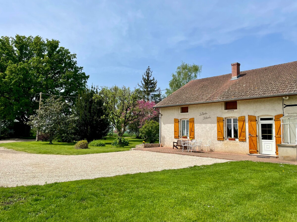 Do you want to relax for few days? This house is for you. Completely restored house, near a magnificent castle of the XVIIth, between mountains and lakes of Jura, attractive house bressane independent restored tastefully. Site calms down with adjacent ground, water source, terrace, swing, ping-pong, ground of balls. It's available for 8-10 guests (with 4 bedrooms and 2 bathrooms). We have a equipped kitchen, a large salon, and a fireplace. You can play outside (large yard). We are located not so far away from Beaune (the capital of wine). It's only 20 miles from our vacation house. You have all of the necessity into the house. Be free to contact us for more informations.