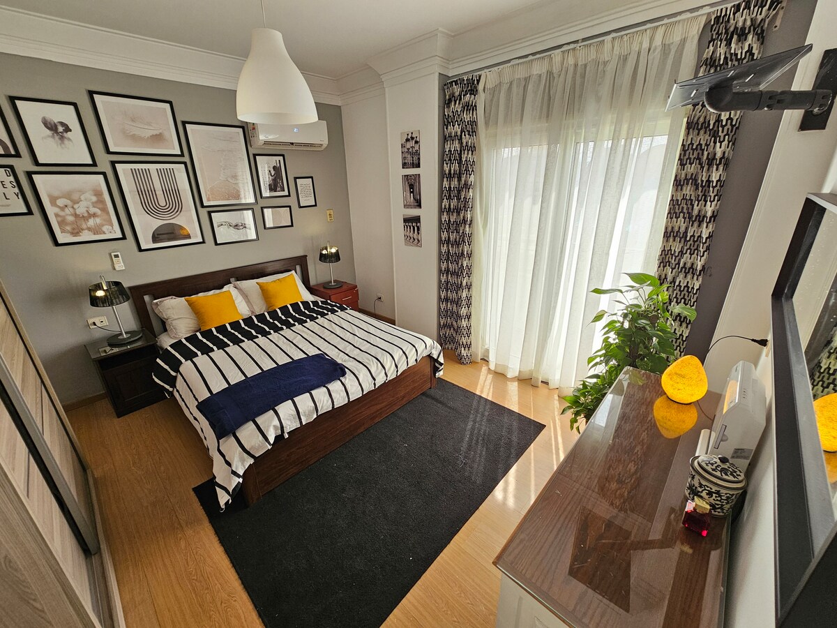 Un lujoso APARTAMENTO ENTERO situado en el CENTRO de todas partes en El Cairo (Maadi ). Las habitaciones están recién amuebladas, tienen aire acondicionado, están bien DISEÑADAS , tienen todos los servicios, están súper LIMPIAS y son TRANQUILAS . El departamento está a diez minutos de la autostrade y A POCA DISTANCIA A PIE de la carretera del río Nilo y de la estación de metro. Cafeterías, restaurantes, supermercados y farmacias están todos cerca. Está a 20 minutos del centro. Calidad estándar del hotel con el hogar como comodidad ofrecida con un PRECIO RAZONABLE.