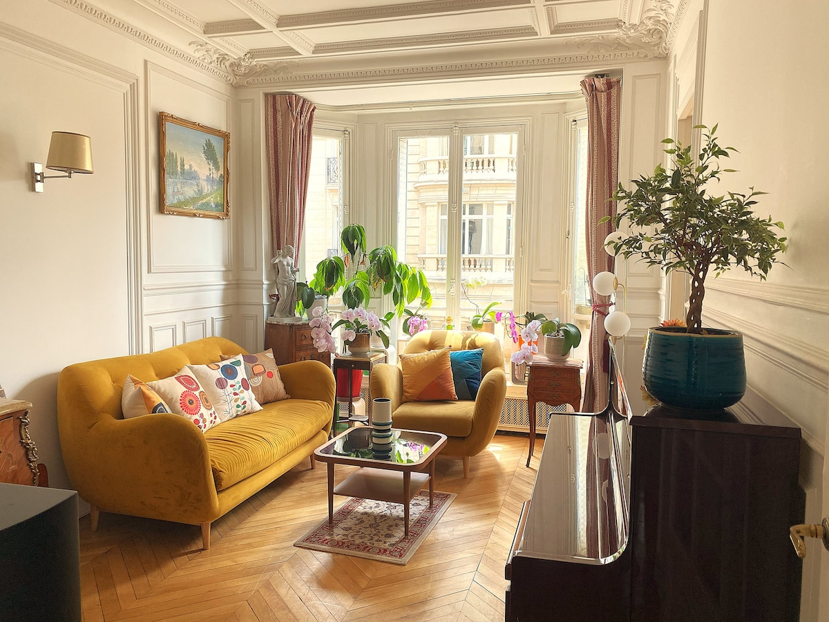 Quiet traditional Parisian apartment in a 19th Century dressed stone building and street on 5th floor with elevator : double living room, bedroom, fully equipped kitchen (dish washer and washing machine/dryer), balcony and private underground parkplace (4 minutes on foot). I furnished and decorated it with love, including paintings. In a neighbourhood vibrant of shops and restaurants, it is 2 minutes on foot from the Metro, from which all Paris must-sees are within a 13-30 minute range.