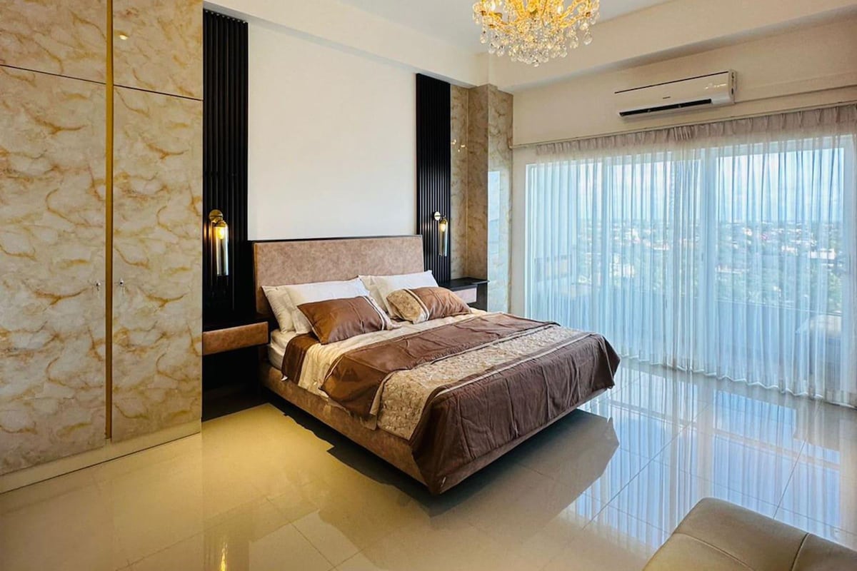 ¡Las mejores vistas del edificio! Se puede organizar la seguridad las 24 horas, los 7 días de la semana, el check-in y el traslado de ida y vuelta. 2 dormitorios con baños adjuntos, 2 camas tamaño king, aire acondicionado completo. Cocina mejorada con espacio adicional en el banco. Smart TV con cable premium. Espacio de trabajo con escritorio doble. Wifi ilimitado de 25 mbps. Lavadora, nevera/congelador, olla arrocera, microondas, jarra eléctrica, utensilios de cocina. Toallas DE baño Y toallas DE playa DE lujo proporcionadas. Fabulosa piscina en el jardín (playa no apta para nadar). Gimnasio en la azotea.