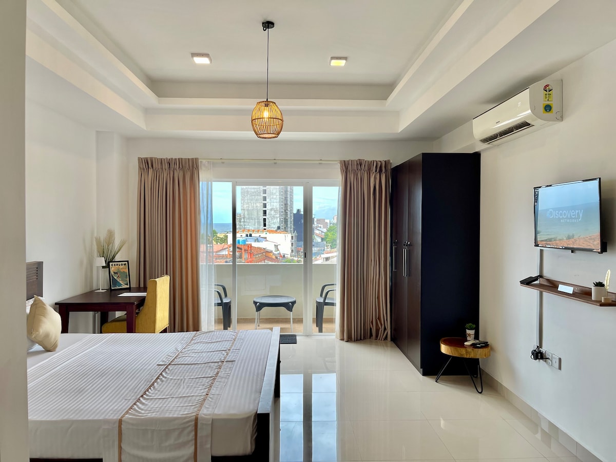 Te damos la bienvenida a Randy's Seaview Studio, ¡tu escapada ideal! A solo 50 metros de la playa de Negombo, este acogedor refugio en el octavo piso ofrece impresionantes vistas al mar y ambiente playero. Disfruta de una lujosa cama tamaño king con vistas al mar, un balcón perfecto para tomar café por la mañana y una moderna cocina pequeña para refrigerios rápidos. Mantente conectado con internet y TV por cable rápidos. ¡Tu escapada perfecta a la playa te espera!