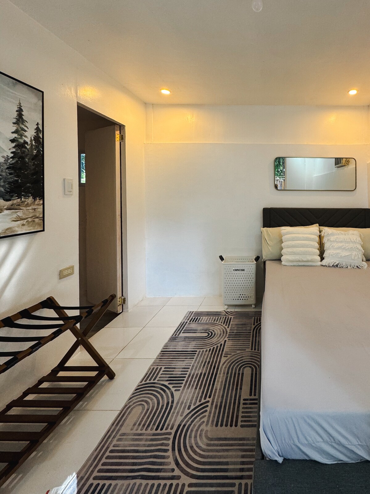 • Piscina de inmersión privada • Totalmente climatizado desde las habitaciones hasta la sala de estar. • Agua presurizada e internet PLDT de alta velocidad • Ocupación: 4 huéspedes (máximo 5 con cargo adicional de 300 PHP/noche, incluidos los niños) • Llegada/salida anticipada previa solicitud, PHP 100/hora (según disponibilidad) • Estancia mínima: 2 días, con descuentos para tarifas mensuales • Solo se proporcionan los servicios básicos • Servicio de entrega de agua disponible cerca (por favor, trae tu propia agua potable)