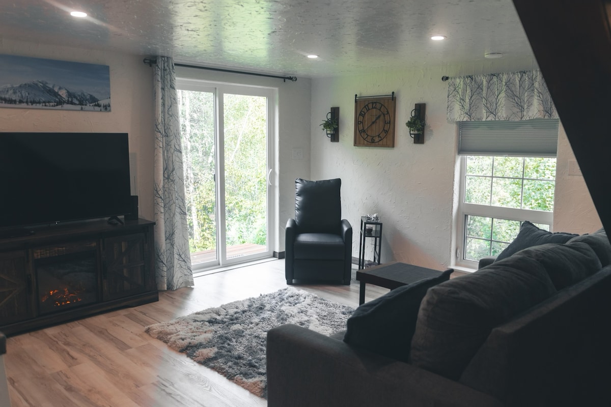 This beautiful private entrance, 2 bedroom mother-in-law apartment offers a great view of the Tanana Valley, wildlife and Auroras from the privacy of your own cedar deck. While seeming remote, it offers full amenities such as unlimited internet, a washer and dryer, a full kitchen and bath and is only 10 minutes from town. This apartment is perfect for a family wanting to experience Fairbanks Alaska without breaking the bank, staying at a crowded downtown hotel or giving up home luxuries.