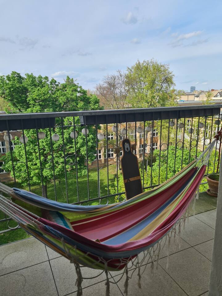 Take it easy at this unique and tranquil getaway. Welcome to the most beautiful spot in Kreuzberg! The apartment is located directly at the park "Hasenheide" with a south-east facing balcony over the park. It has two rooms - one smaller bedroom and one living room with a kitchen. It’s fully furnished, has controllable lights, a speaker system and floor heating.