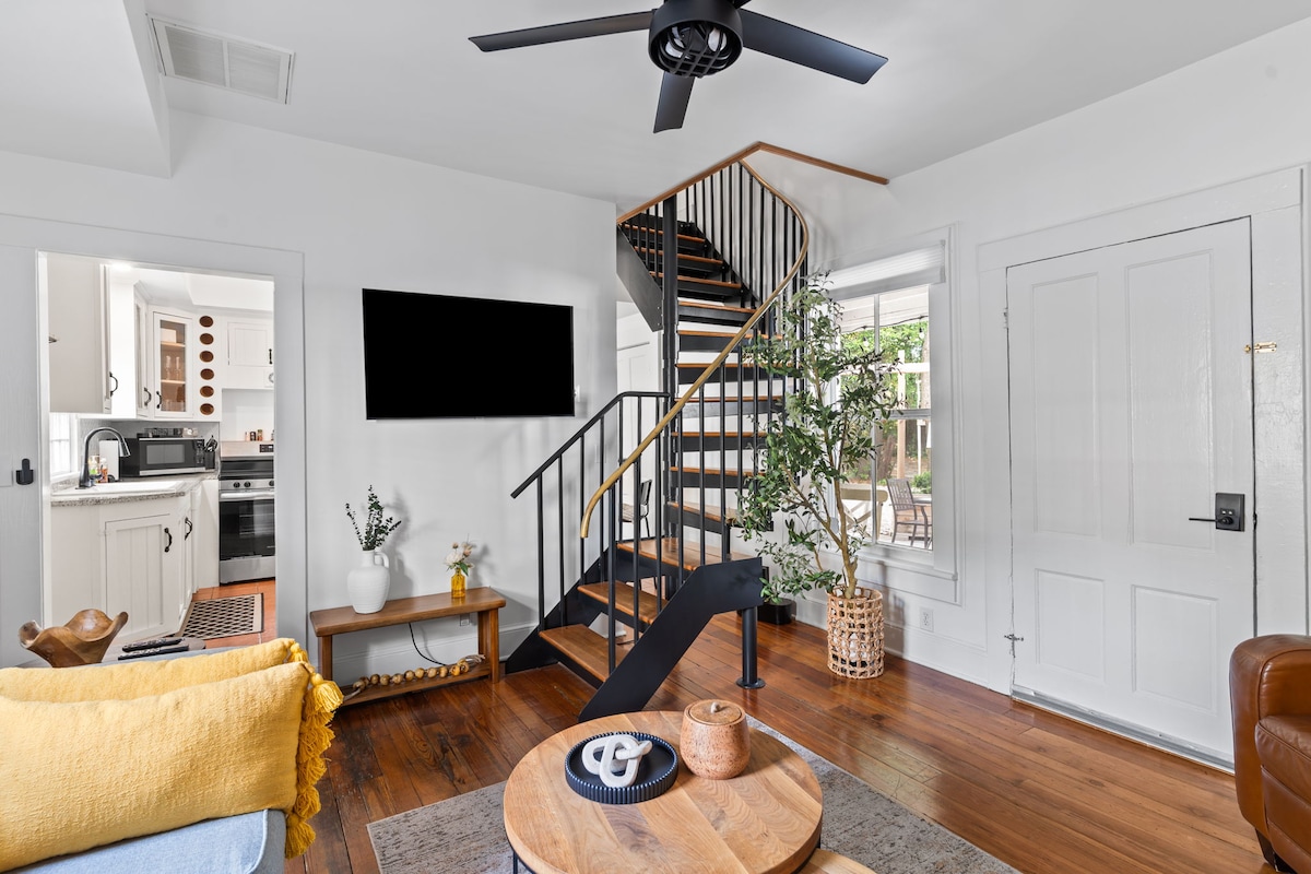 Bienvenido a una escapada encantadora y acogedora perfectamente ubicada en Midtown Wilmington, entre Wrightsville Beach y el centro histórico. El loft del segundo piso cuenta con suelos de pino de tablones anchos, una cama tamaño king, un sofá, electrodomésticos de acero inoxidable y una terraza privada para disfrutar de las bandas en vivo que actúan cerca. Estás a poca distancia a pie de cafeterías locales únicas, librerías, arte y restaurantes. El sendero Cross-City está a pocos pasos para aquellos que deseen comenzar su mañana con un paseo en bicicleta, caminar o correr.
