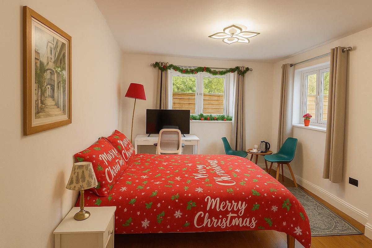 Elegante suite de invitados de 1 dormitorio, totalmente independiente y lo suficientemente lejos de la casa principal como para tener tu propia privacidad. Entre los distritos de Kingston y Sutton, la estación de Worcester Park está bien comunicada en tren con las estaciones de Vauxhall (22 minutos) y Waterloo (30 minutos). La estación de Wimbledon está a solo 2 paradas (10 minutos).