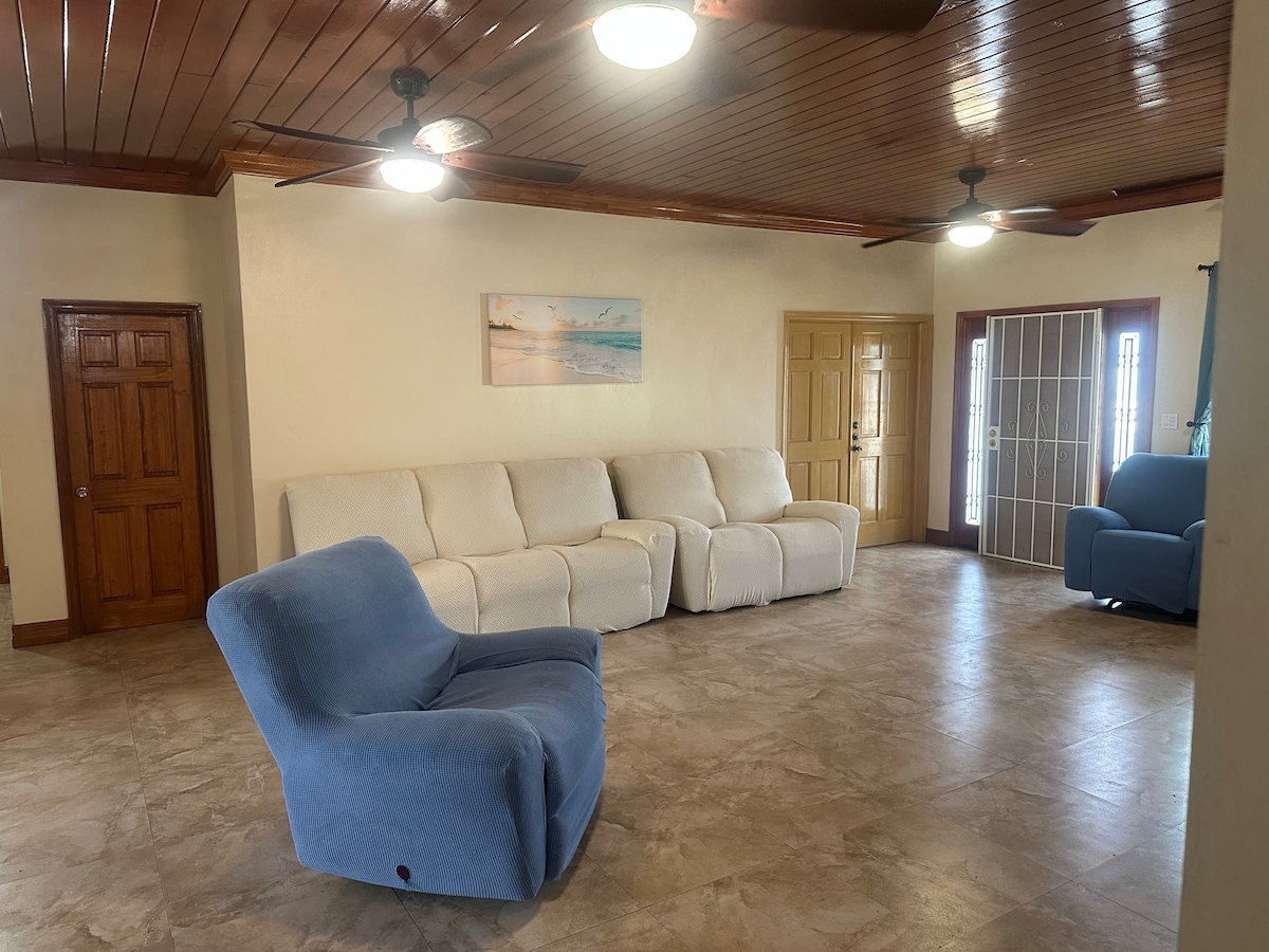 Gran casa de vacaciones a pocos minutos de la playa. ¡Es el lugar perfecto para unas vacaciones! Tiene un acogedor tema isleño y está acentuado con techos de madera de pino local, molduras de corona y ribetes. Consta de dos (2) amplios y cómodos dormitorios con dos (2) baños privados. Cuenta con un comedor de flujo abierto y sala de estar. La cocina está equipada con todos los elementos esenciales necesarios con lavadora y secadora.