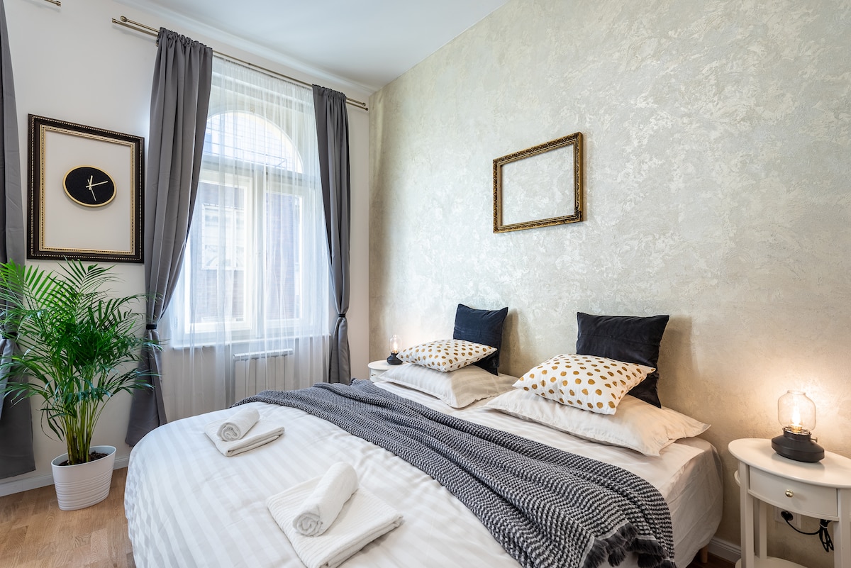 Un nuevo y lujoso apartamento de un dormitorio en un edificio histórico recientemente renovado en el casco antiguo de Praga. El apartamento tiene un interior muy moderno combinado con elementos clásicos de madera. Hay un dormitorio tranquilo con cama doble y un colchón de alta calidad, una cocina totalmente equipada, una cómoda sala de estar con un sofá cama y un baño separado. Internet rápido. El apartamento es perfecto para dos, pero tiene capacidad para cuatro huéspedes. El edificio cuenta con recepcionista 24/7 y seguridad de servicio.