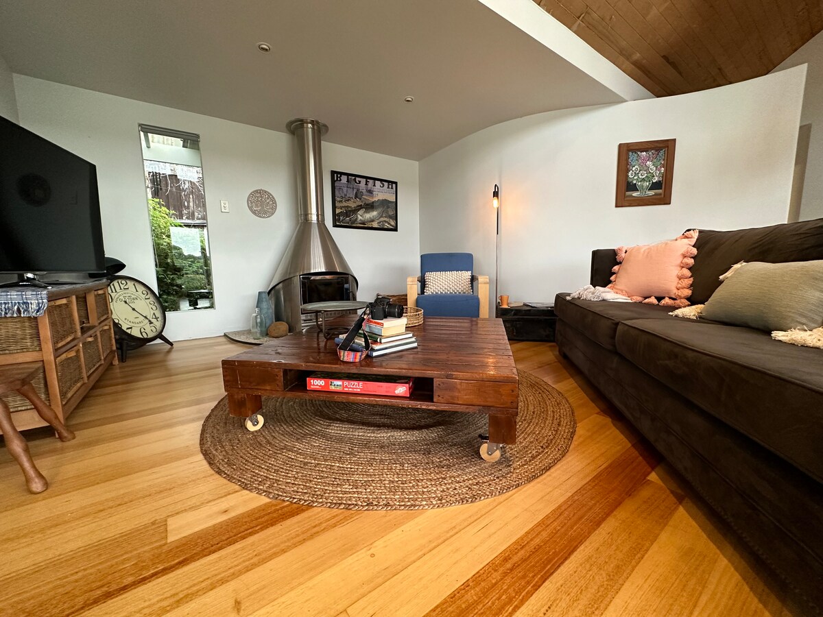 A solo 10 minutos del centro de negocios de Launceston, frente a los humedales de la isla Tamar, esta acogedora escapada está rodeada de arbustos nativos, un hermoso jardín y vida silvestre, y cuenta con un spa al aire libre con un pozo de fuego y una sauna de cedro, con unas vistas impresionantes. En el interior encontrarás muebles y decoraciones artesanales a medida, con un enfoque en la madera nativa sólida que irradia calidez y carácter. El estudio de Jaclyn es un trabajo de amor, lleno de texturas naturales y comodidades de calidad para tu relajación, recreación y revitalización.