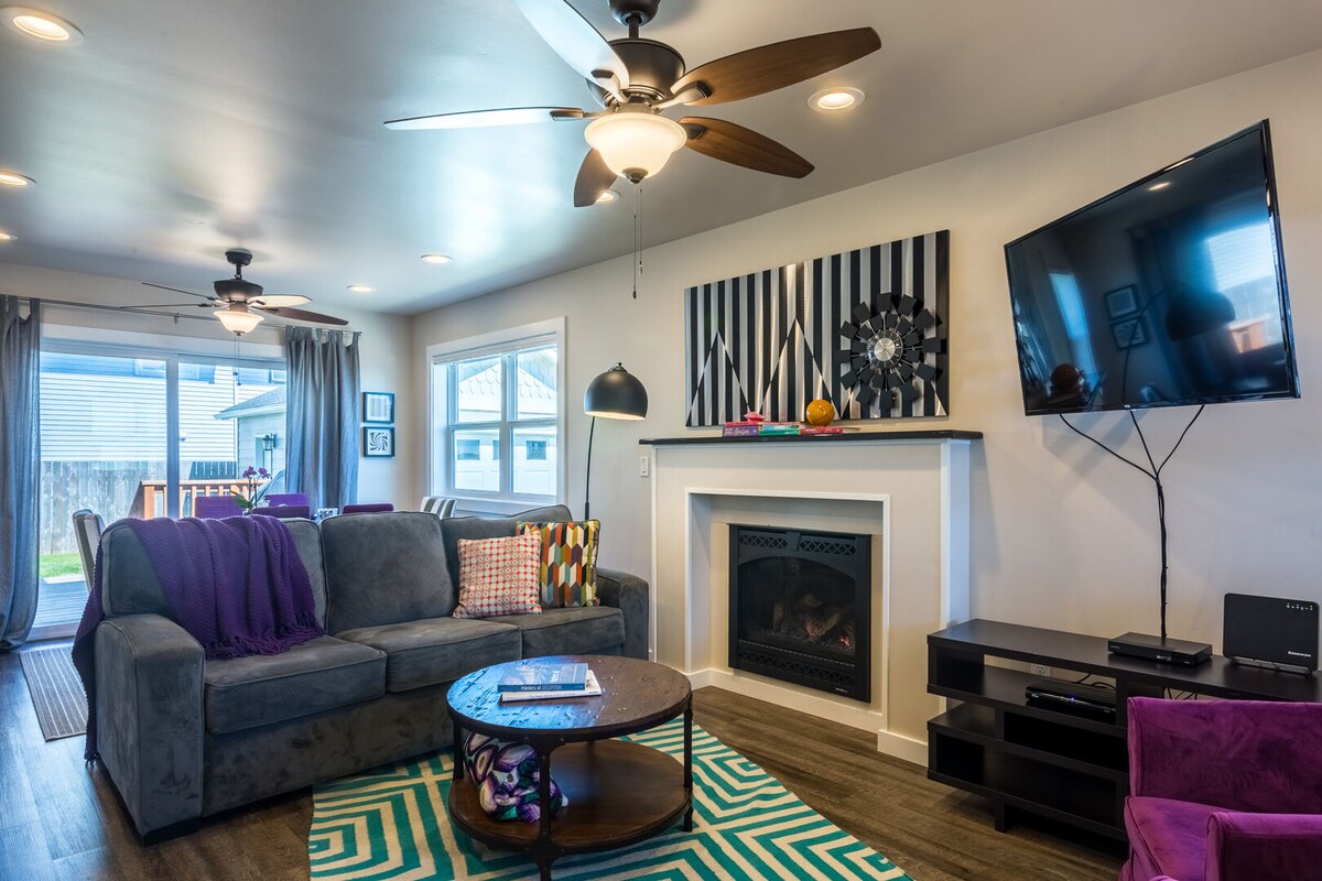 Relájate y desconecta en Summer Breeze Cottage en Newport/South Beach. Esta casa de 3 camas tamaño king y 2,5 baños tiene un ambiente retro y bohemio perfecto para una escapada costera. ¡La sala de estar abierta tiene grandes ventanas del piso al techo que cuentan con 180° vistas del océano! Completo con lo básico necesario para unas noches de distancia. Además de chimenea de leña, mesa de futbolín, Netflix, Amazon, 2 bicicletas de crucero por la playa y juegos. ¡No te pierdas el columpio de la hamaca en la terraza envolvente! Hay un montón de estacionamiento para varios autos.