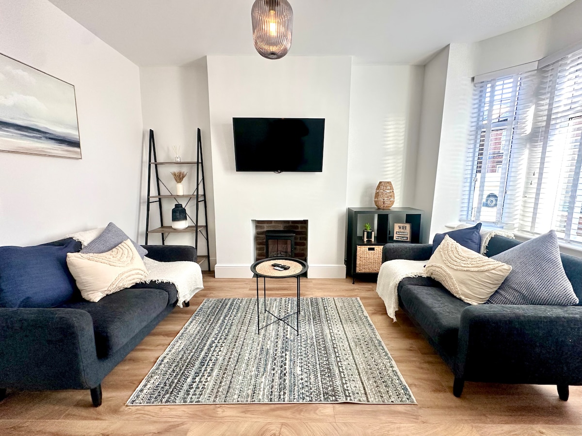 Elegante casa de 3 camas en un barrio tranquilo, perfecta para que familias o parejas se relajen. Disfruta de televisores grandes, WiFi, una sala de juegos con dardos y mesa de billar, escondite secreto con una cama de cabaña y una bañera de hidromasaje para que todos disfruten. Este es un espacio tranquilo, así que no se permiten fiestas ni reuniones ruidosas, por favor. La bañera de hidromasaje y la sala de juegos están disponibles para su uso inmediato en el momento de su llegada sin coste adicional.